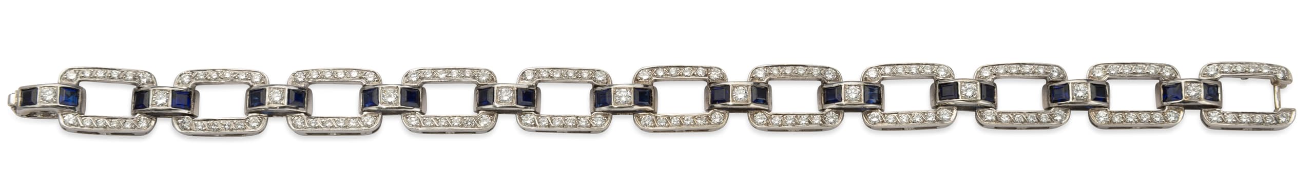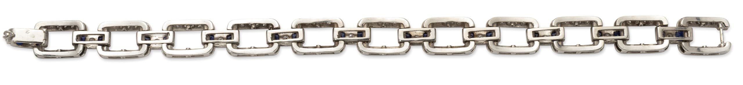 Bracelet in 18K gold with diamonds weighing approximately 3.5 ct. and square sapphire weighing approximately 1 ct.