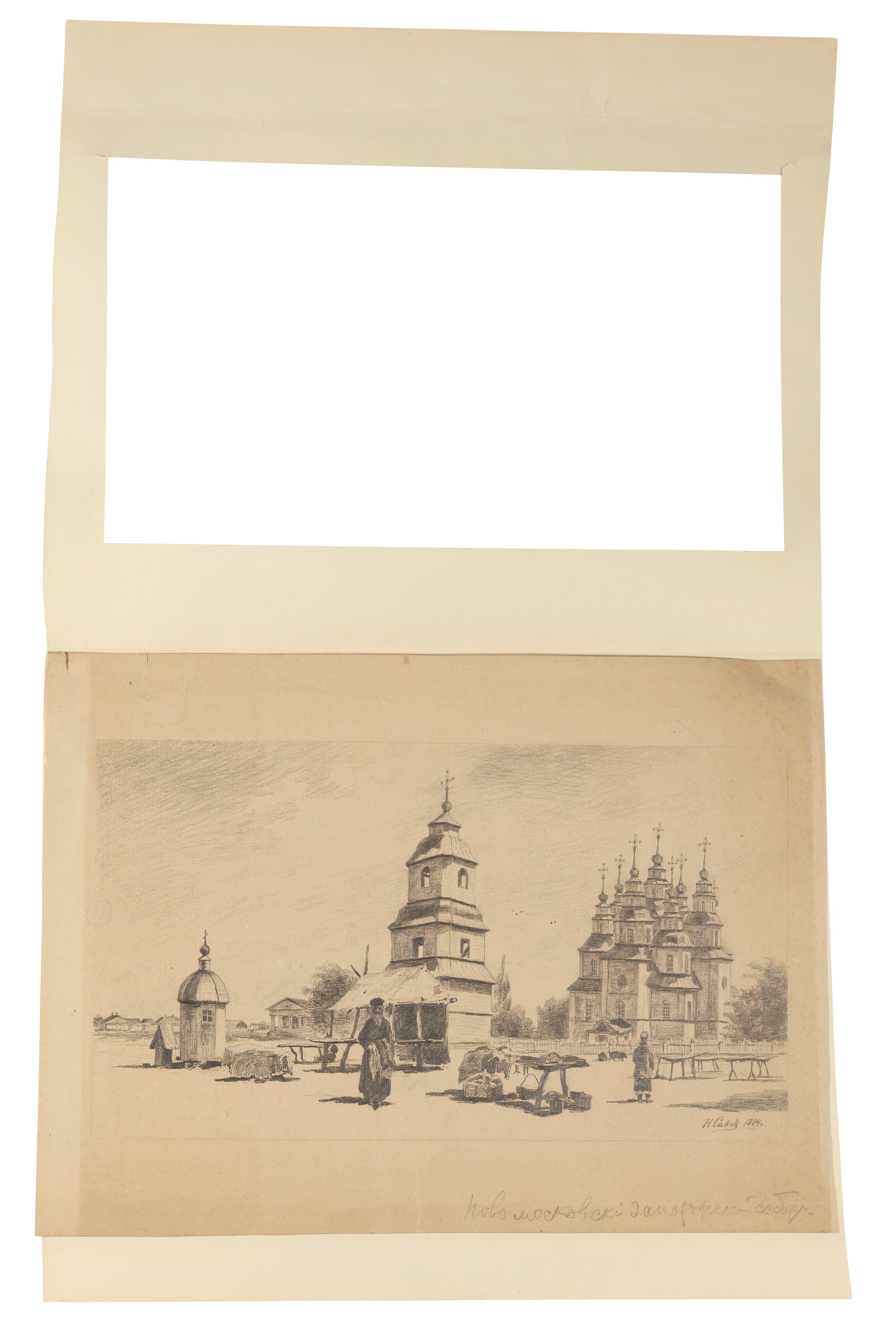 signed in Cyrillic and dated ‘N Saks 1884’ (lower right), inscribed in Cyrillic ‘Novomoskovsky Zaporozhsky Sobor’ (in the lower margin)