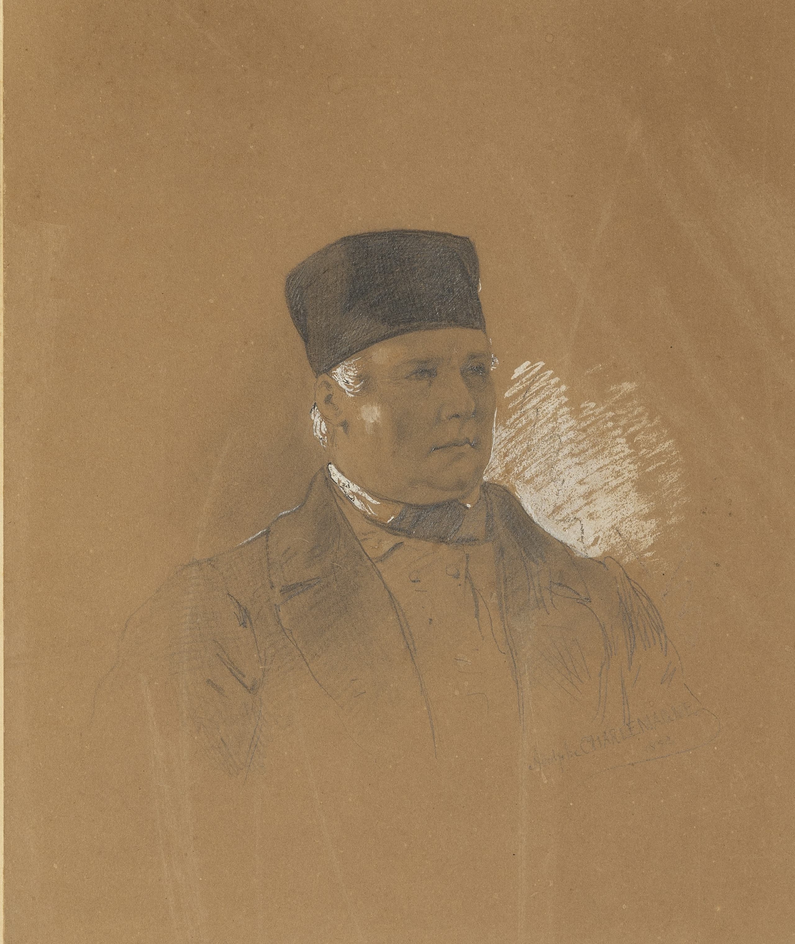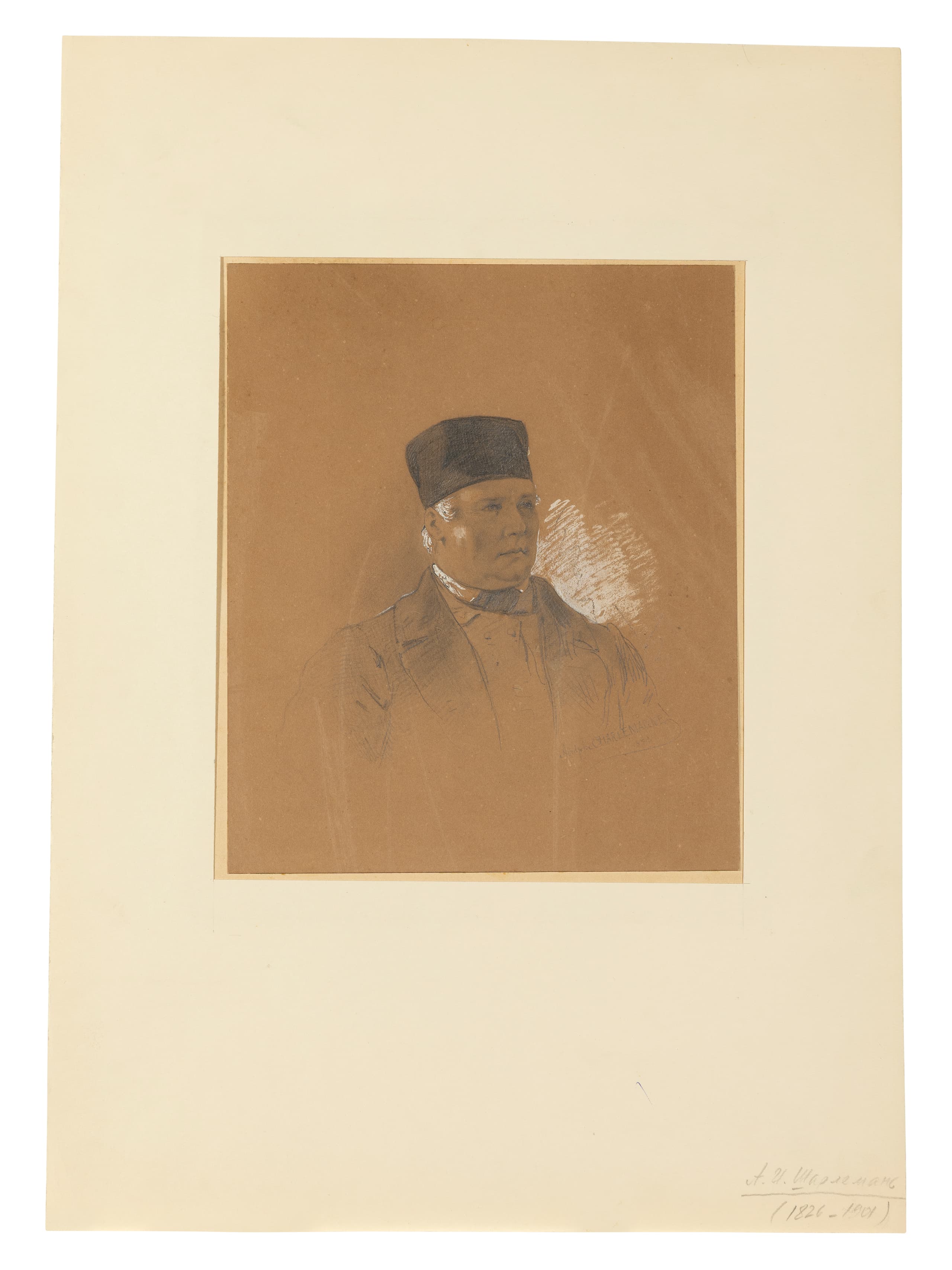 signed and dated ‘A Charlemagne / 1854’ (lower right) pencil and white wash on paper laid on board 21.8 x 18.3 cm