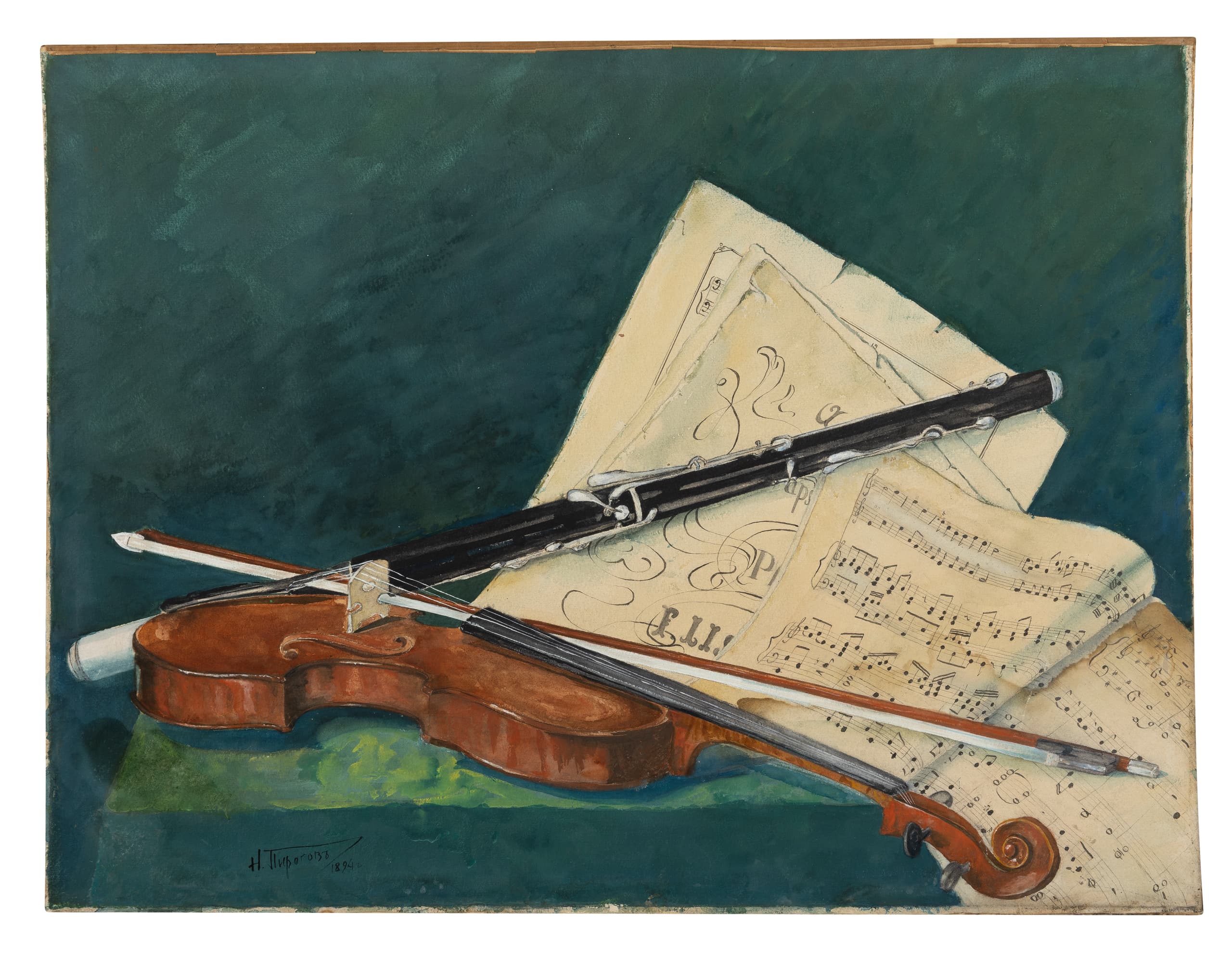 NIKOLAI VASILYEVICH PIROGOV (1872–1913) Still Life with a violin, clarinet and sheet music