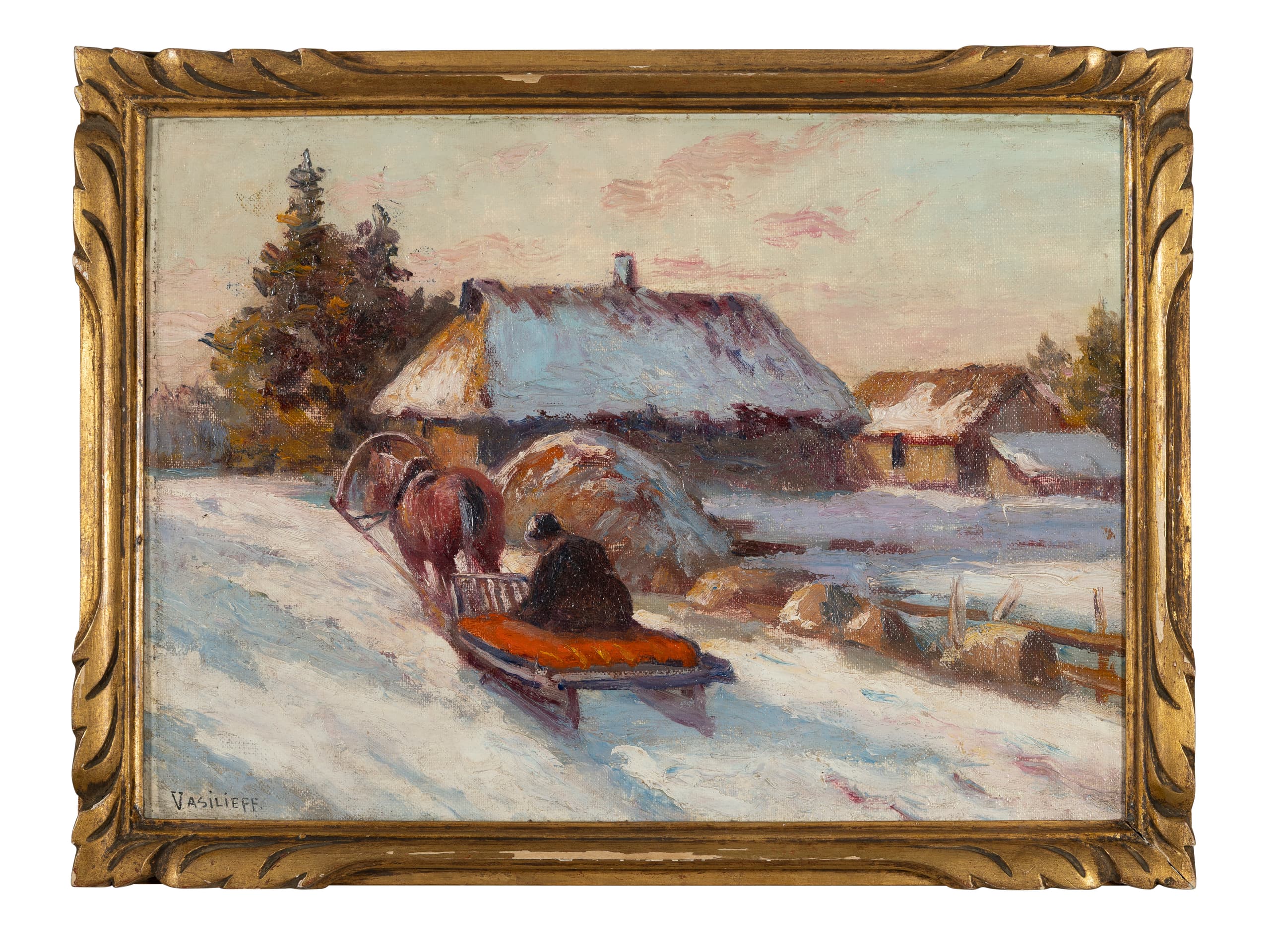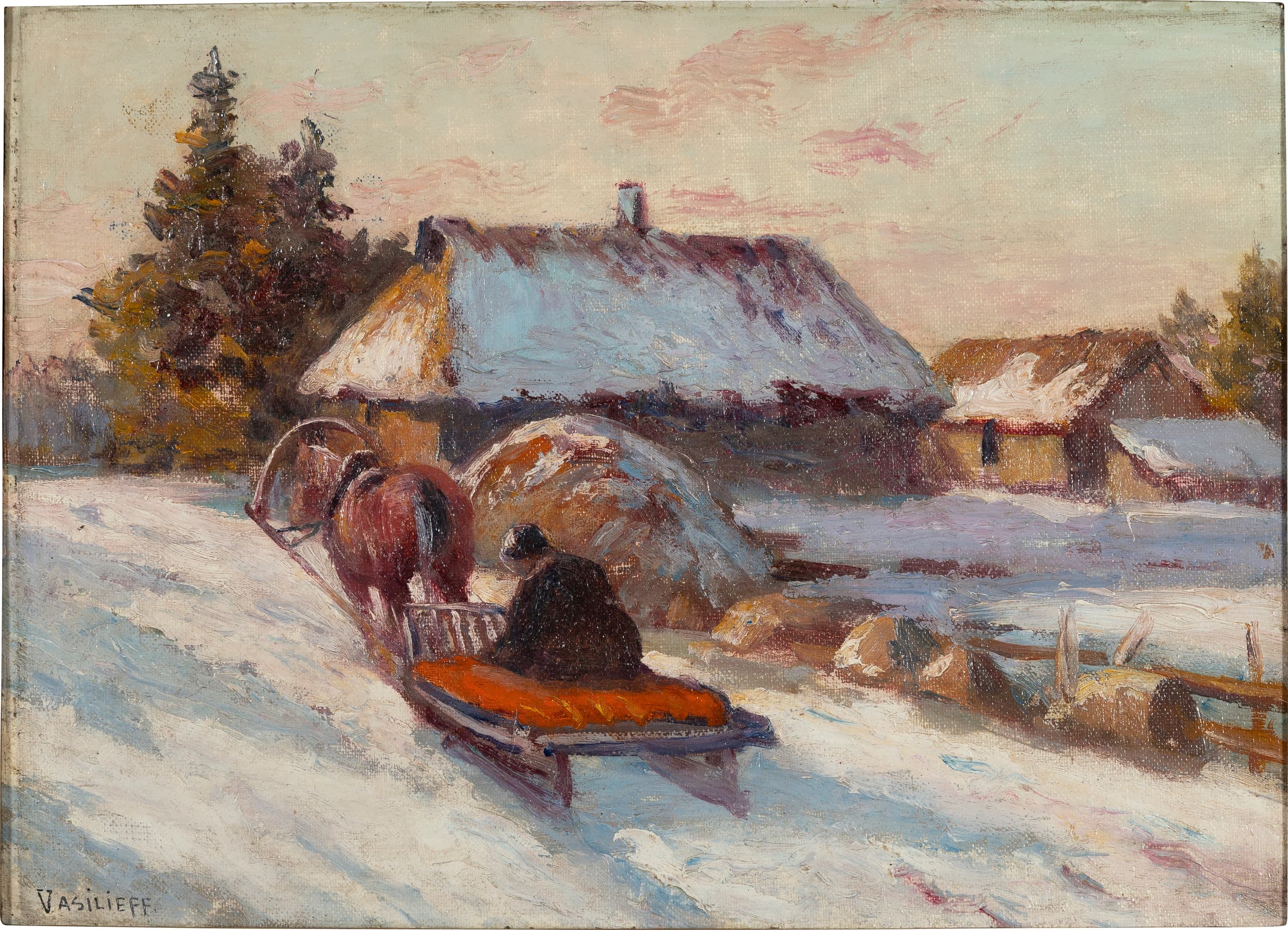 VASSILIEFF (RUSSIAN SCHOOL, FIRST HALF OF THE 20TH CENTURY) Winter landscape with a man on a sledge