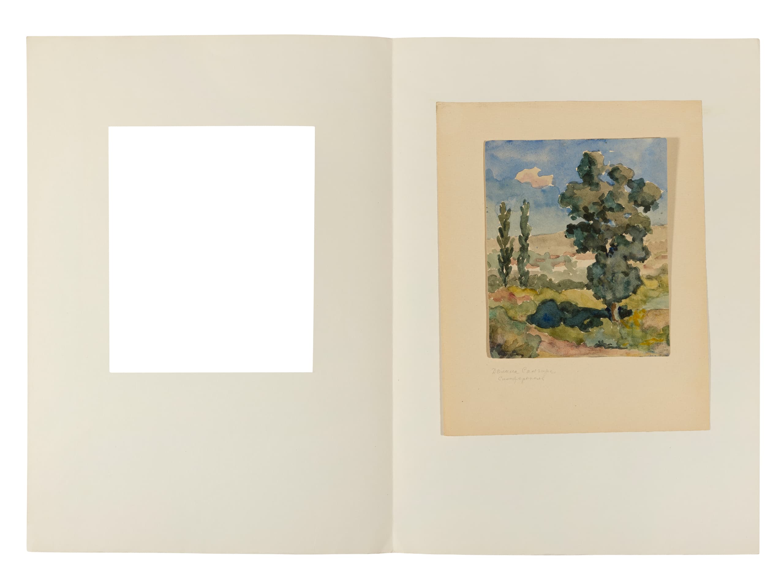 inscribed in Cyrillic ‘V Krymu / N. Bom-Grigorieva’ (on the reverse) watercolour on paper 18 × 14.8 cm