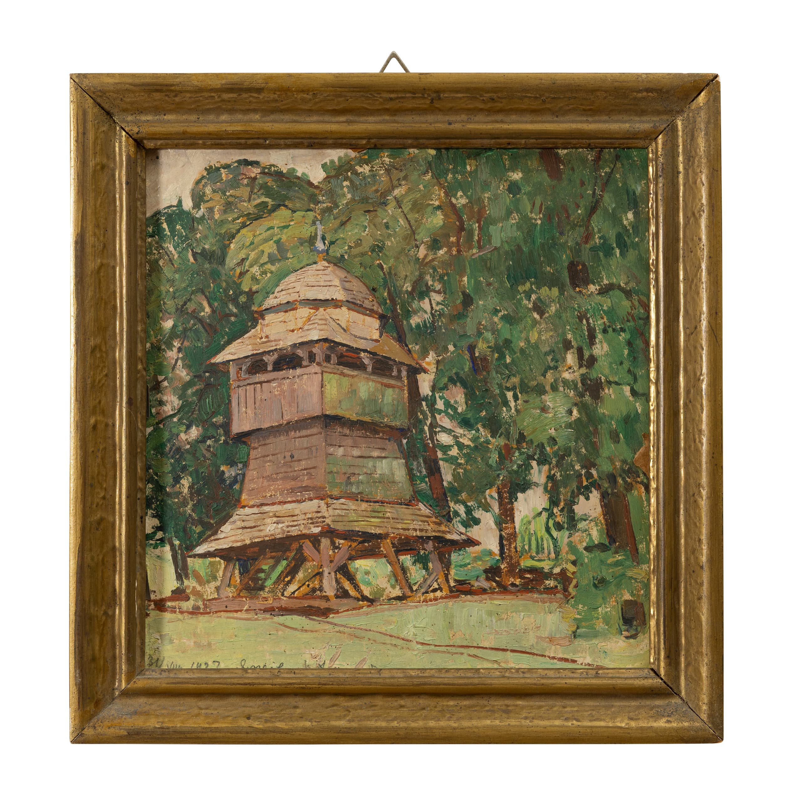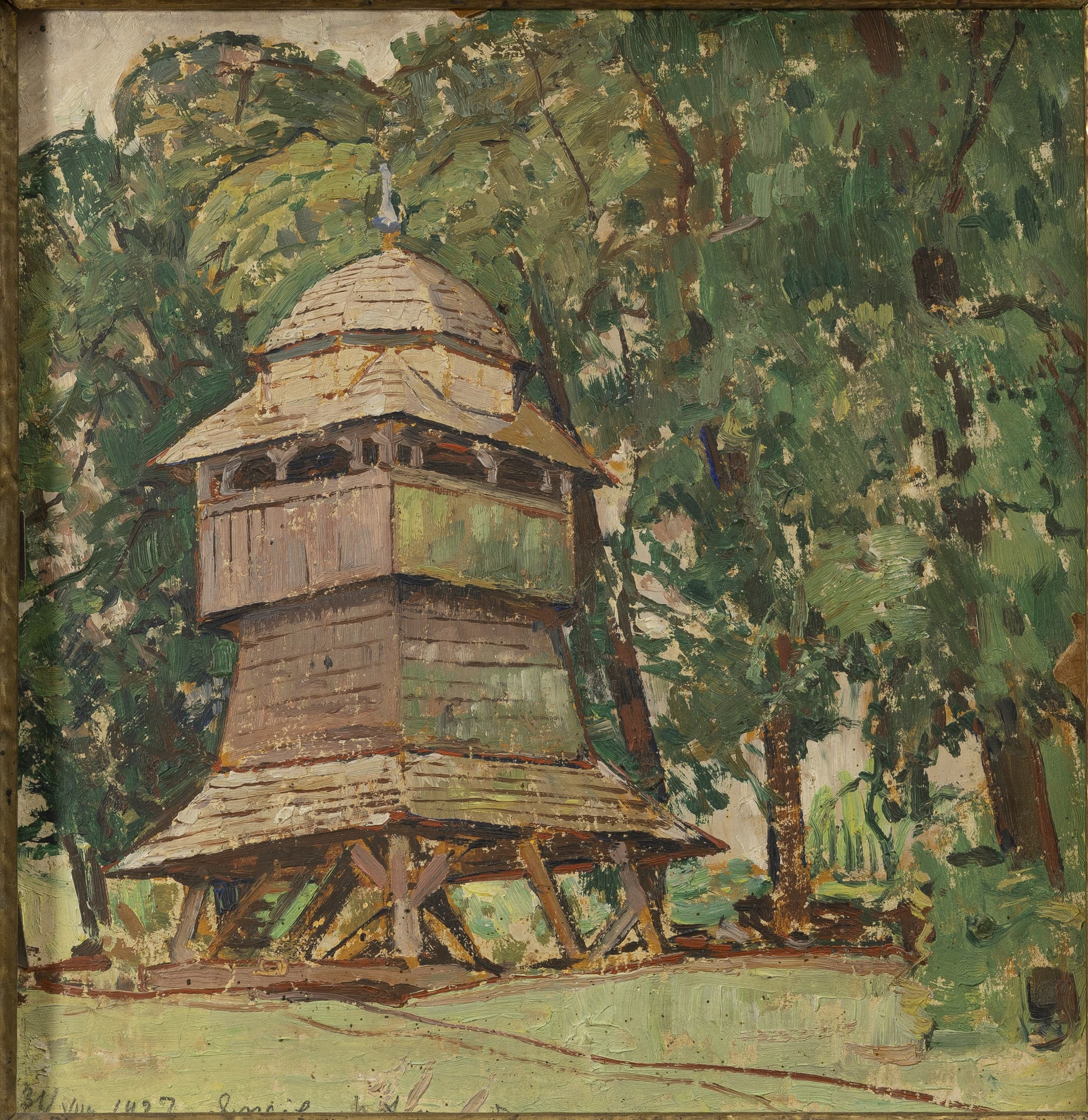 Illegibly signed in Ukrainian and dated ‘31/VIII 1927 Yazhiv ’ (lower left), ownership inscription (on the reverse) oil on board 20 x 19 cm (à vue) executed in 1927