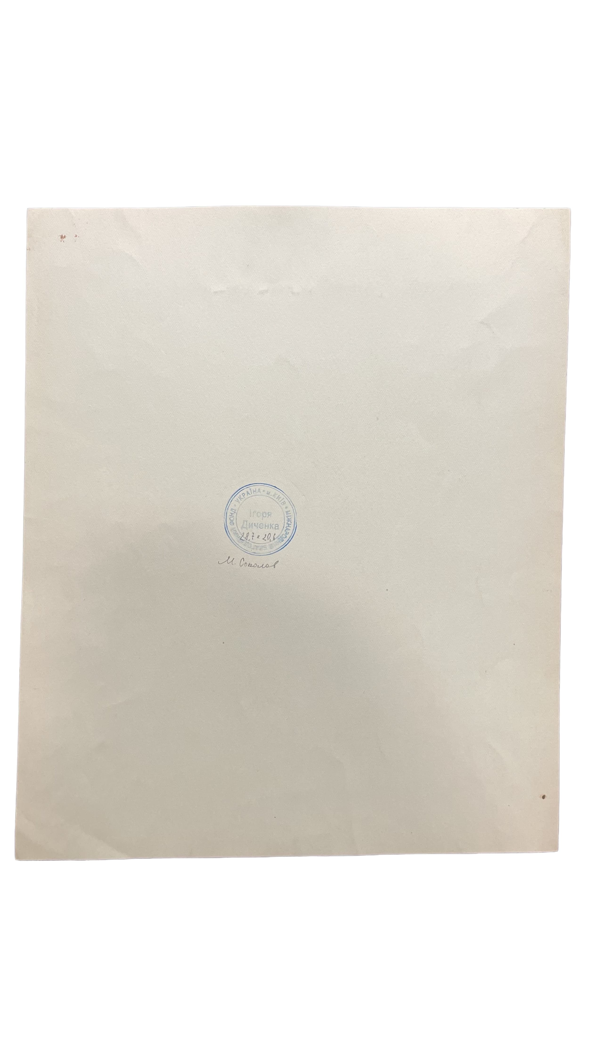 Titled in pencil in Cyrillic (lower right, on the sheet); inscribed in pencil, ownership stamp of Igor Dichenko collection (on the reverse)