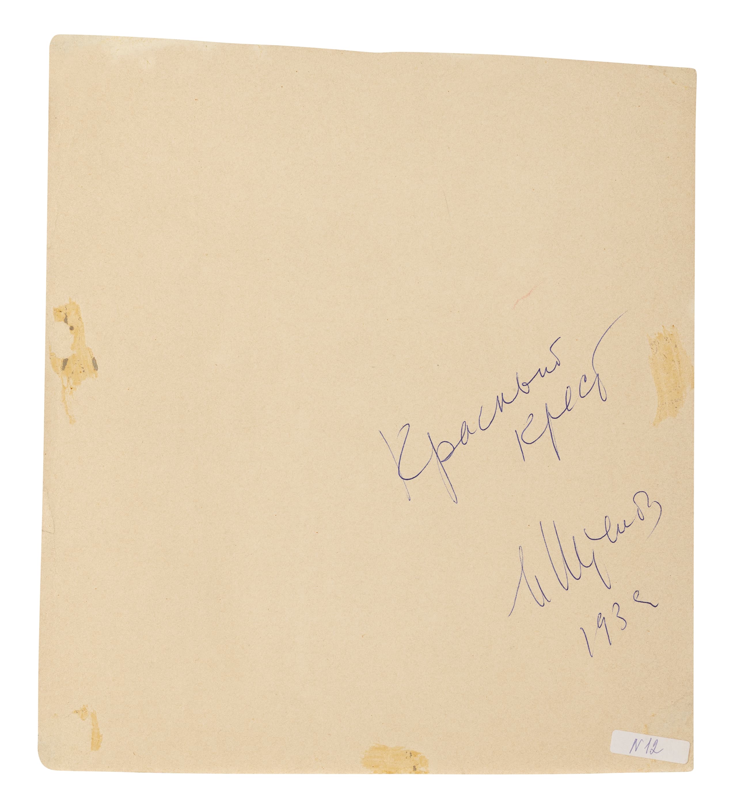 Signed in Cyrillic and dated ‘I Stenberg 1932’ (lower right), signed again and titled in Cyrillic ‘Krasny Krest’ (on the reverse)