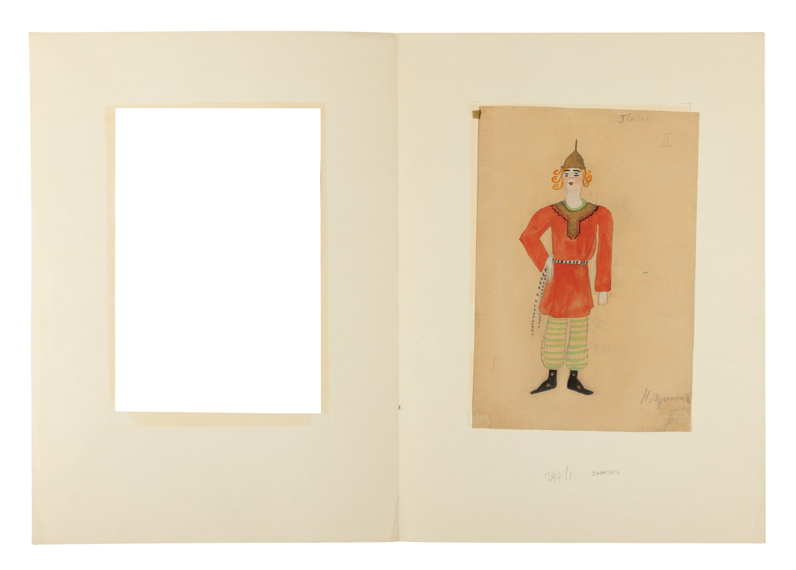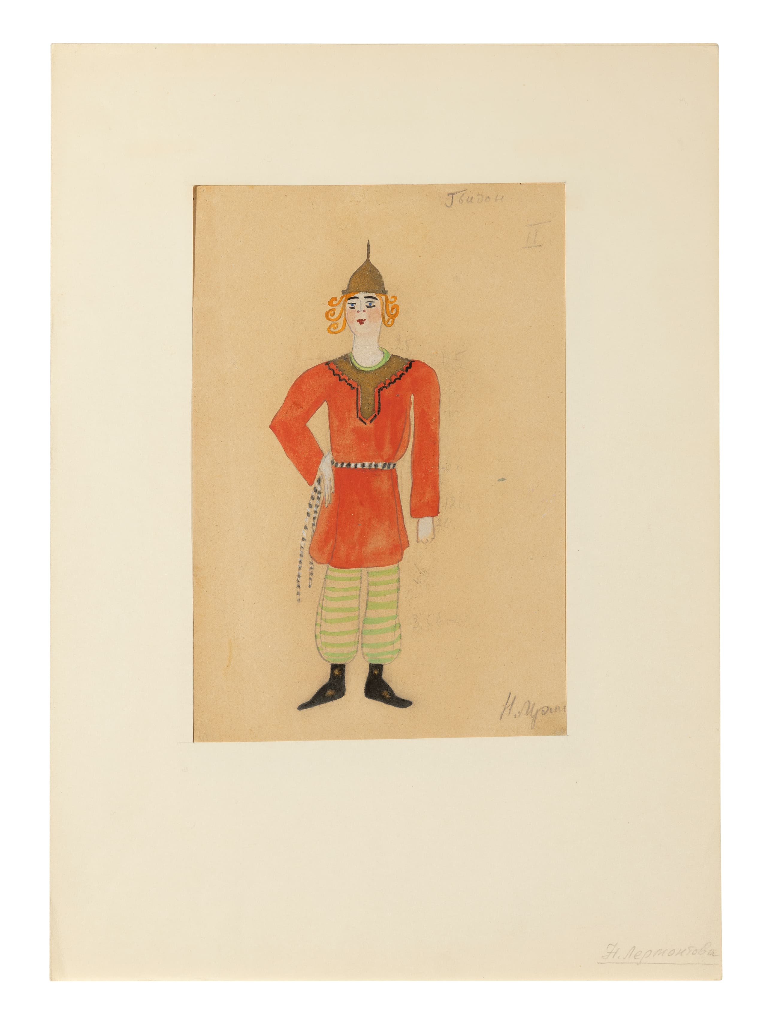 NADEZHDA VLADIMIROVNA LERMONTOVA (1885–1921) Costume Design for Prince Gvidon from Alexander Pushkin’s The Tale of Tsar Saltan