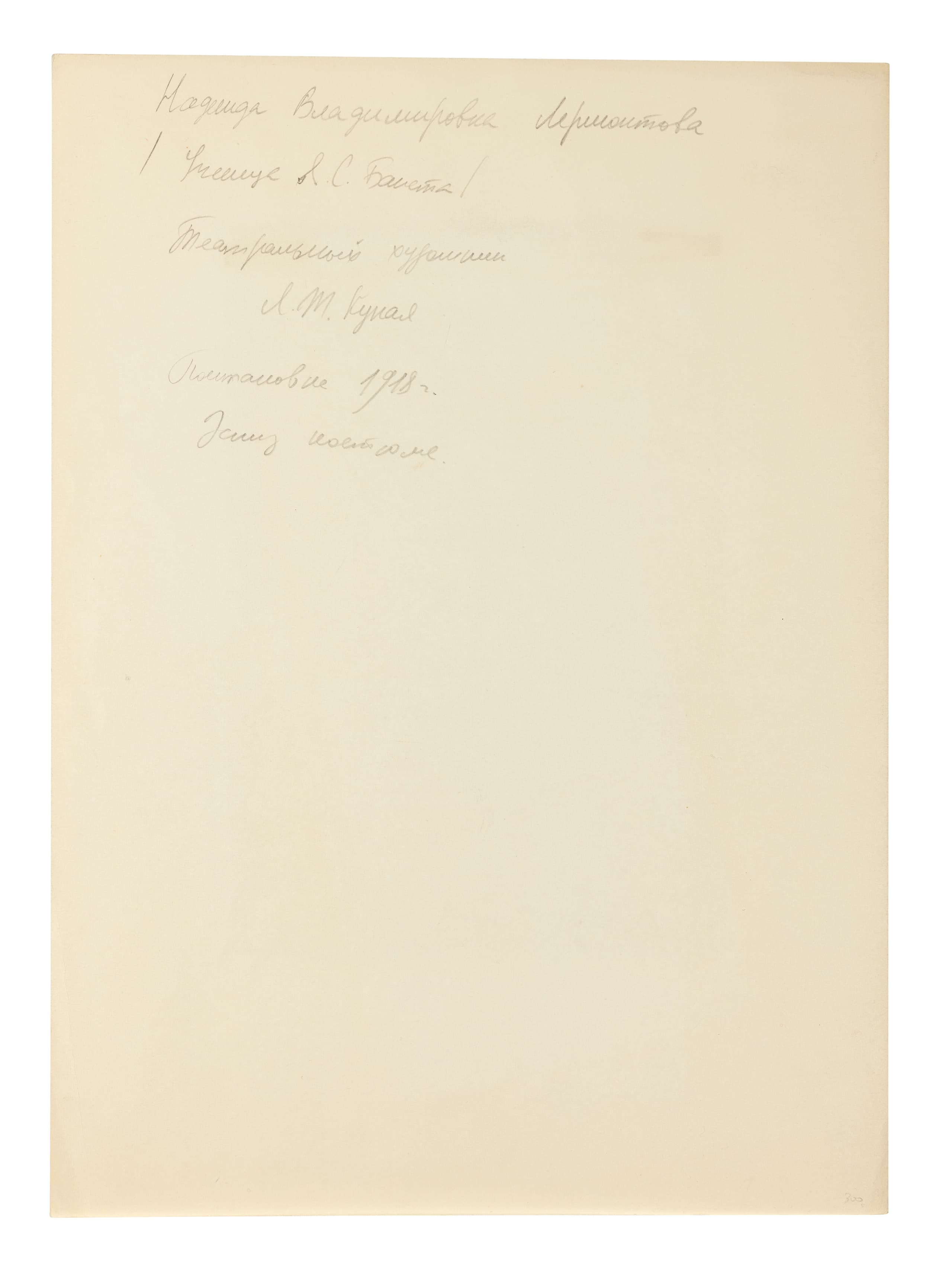 signed in Cyrillic ‘N. Lermontova’ (lower right), inscribed in Cyrillic ‘Gvidon’ (upper right), with an expert’s inscription dated 1918