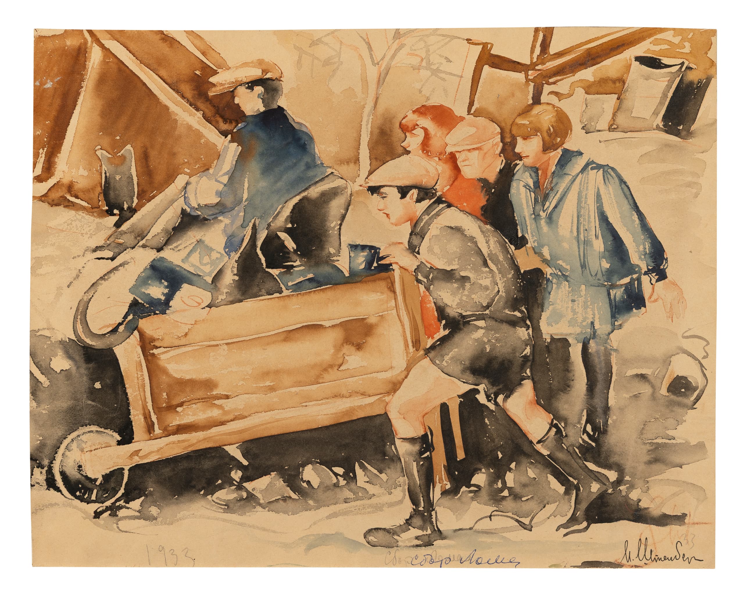 signed in Cyrillic and dated ‘I Shtenberg 33’ (lower right), inscribed in Cyrillic ‘Sbor Loma’ (along lower edge), daled ‘1933’ (lower left)