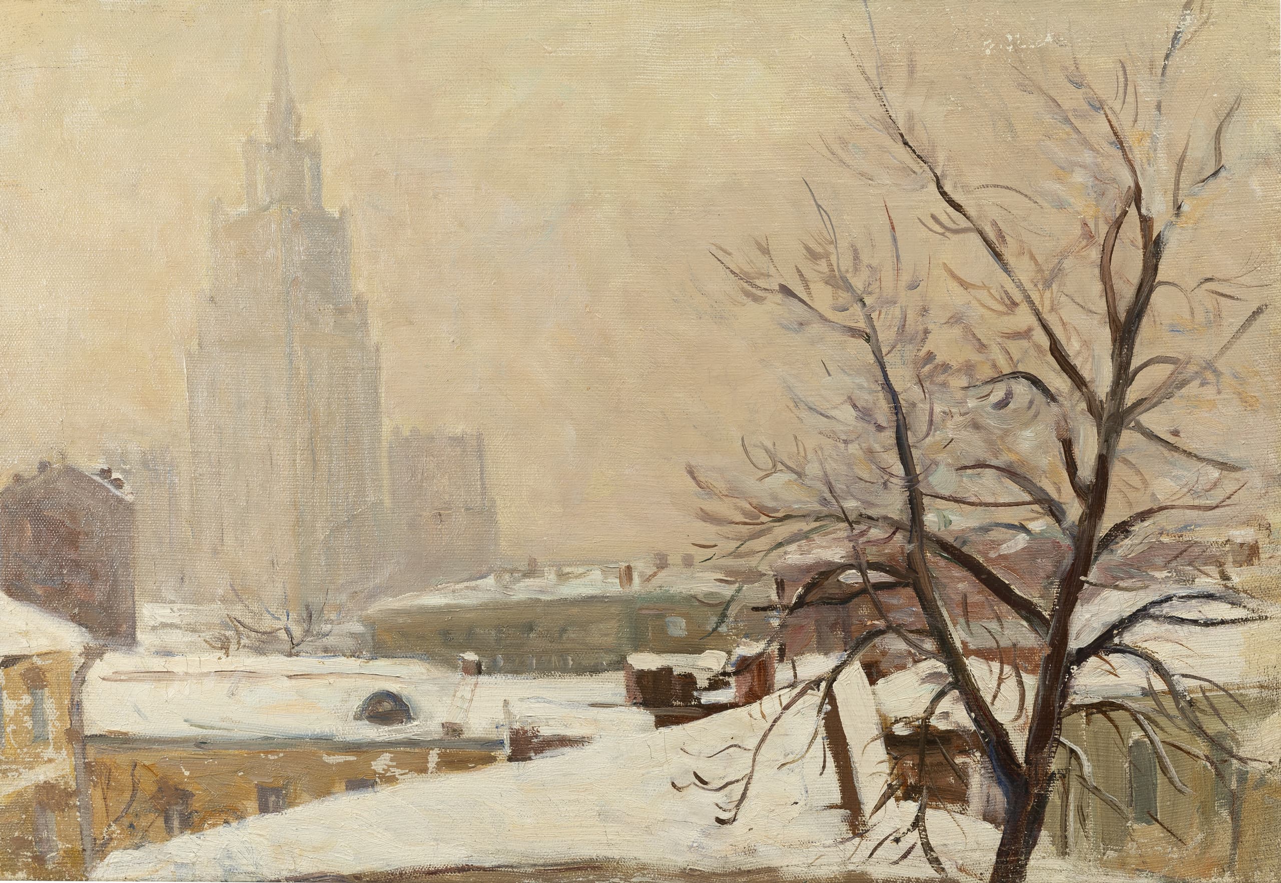 signed and titled in Cyrillic ‘Stenshinskaya / Moskva’ (on the reverse) oil on canvas 44 x 64 cm