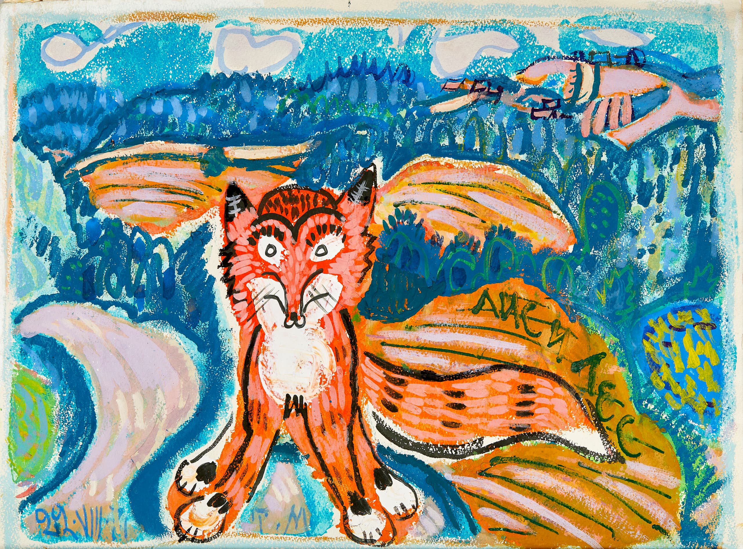signed with initials, titled in Cyrillic and dated 'Lis i Les/22.VIII.71/TM' (lower left) gouache, watercolour on paper 51 x 39 cm executed in 1971