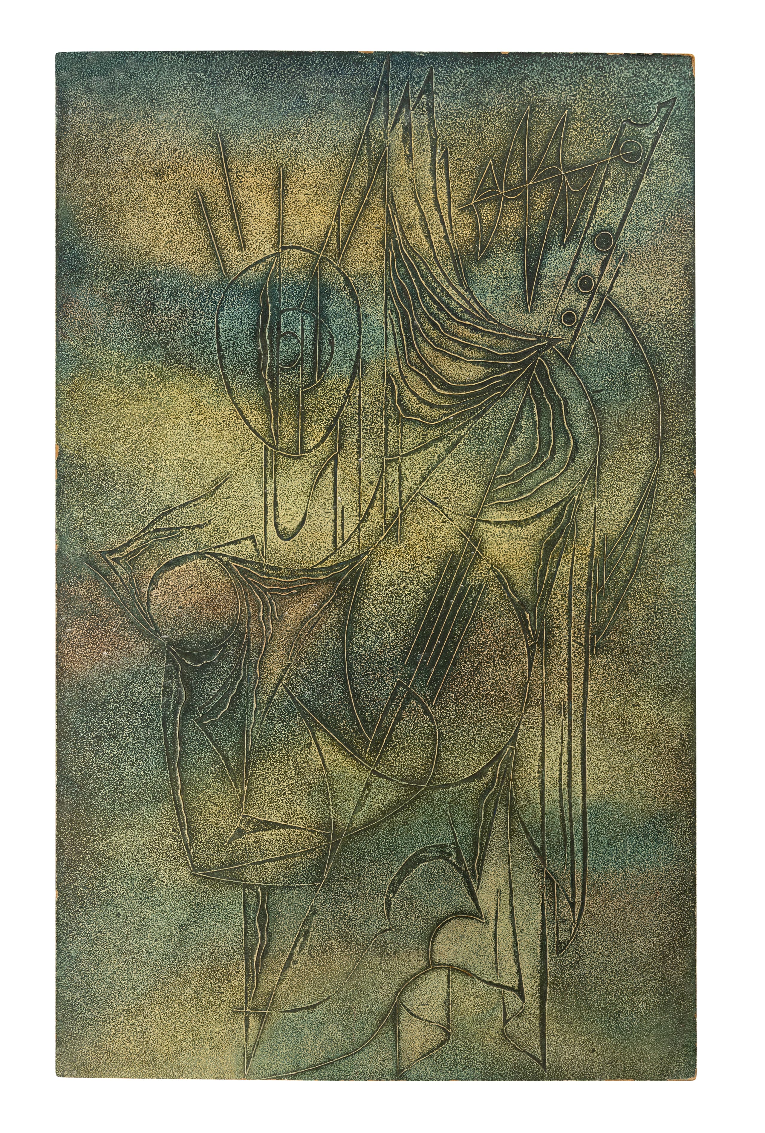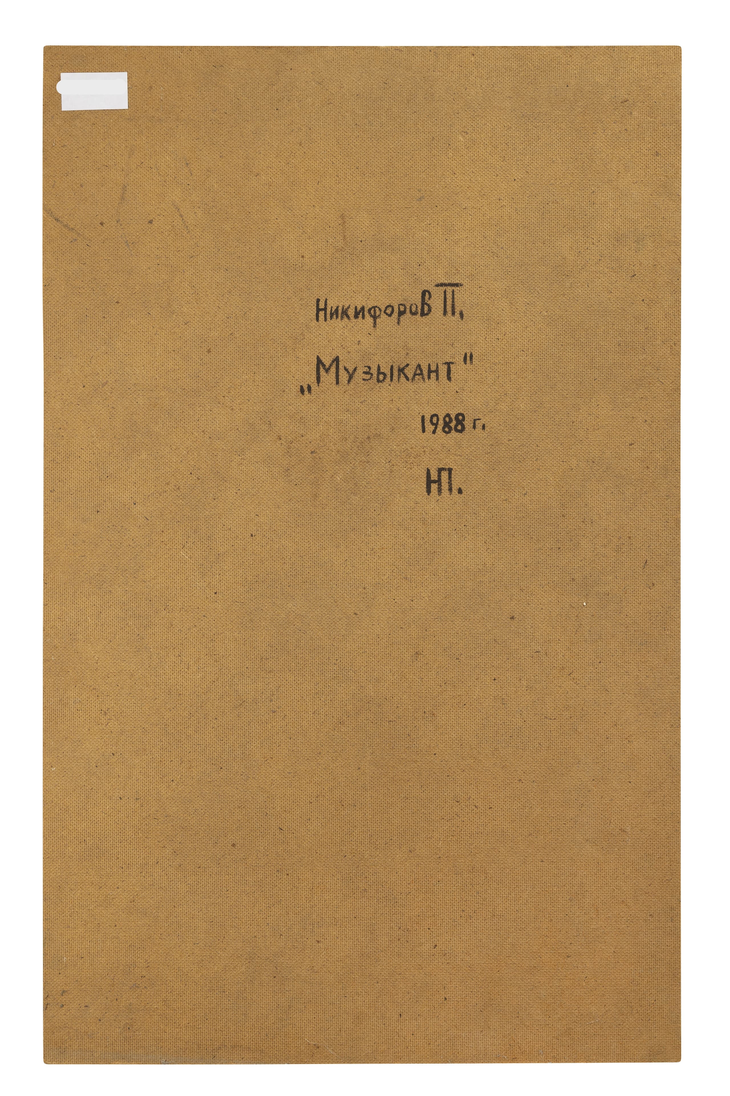oil on board signed, inscribed in Cyrillic ‘Nikiforov P / Muzikant / 1988 / NP’ (on the reverse) 82.5 cm x 51 cm executed in 1988