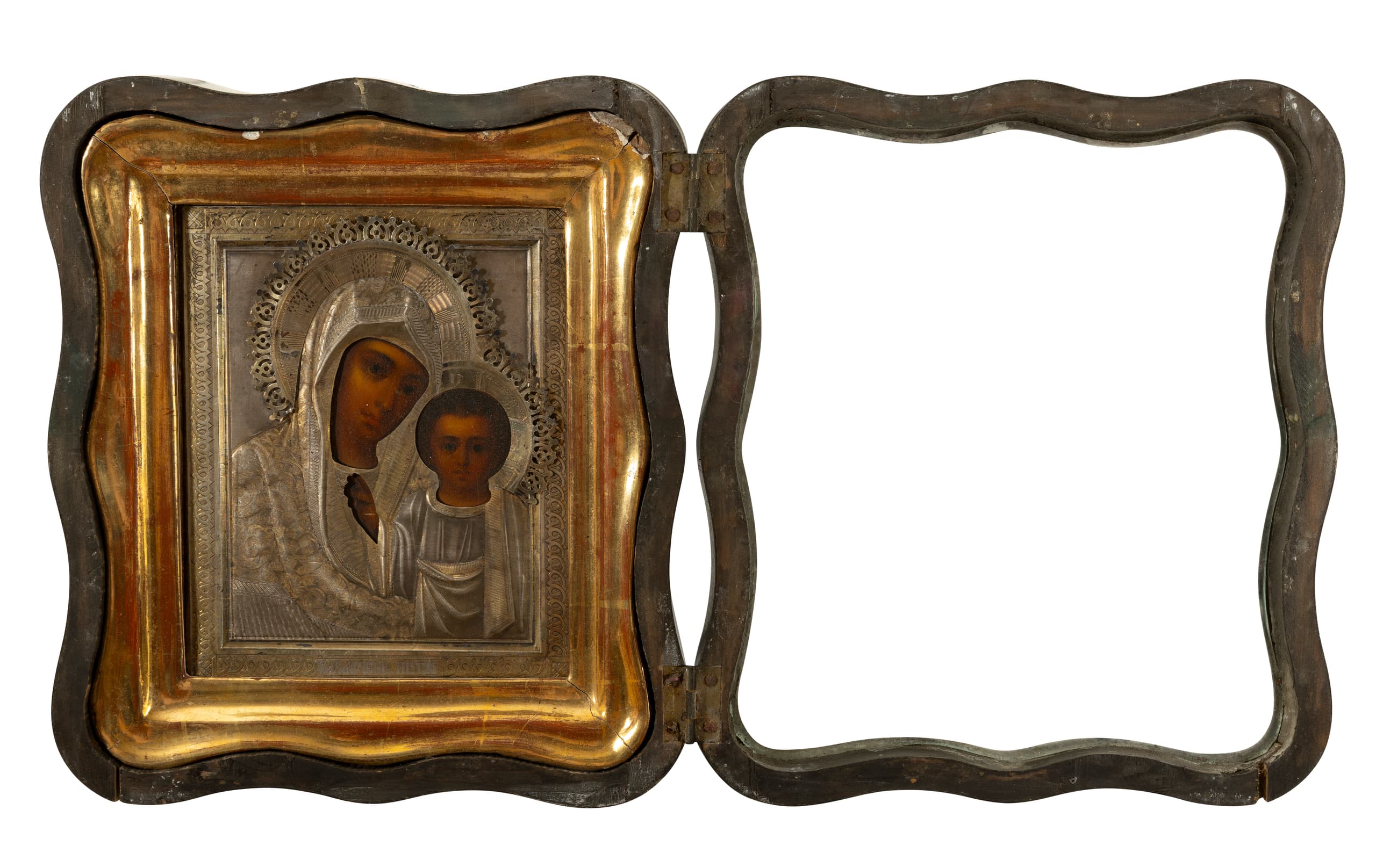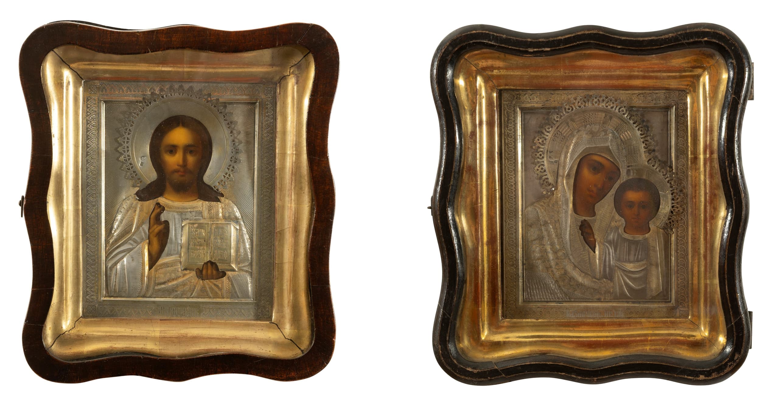 PAIR OF ICONS FOR A WEDDING CEREMONY ICON ‘CHRIST PANTOCRATOR’ WITH SILVER FRAME AND CASE (KIOT) ICON ‘MOTHER OF GOD KAZANSKAYA’ WITH SILVER FRAME AND CASE (KIOT)