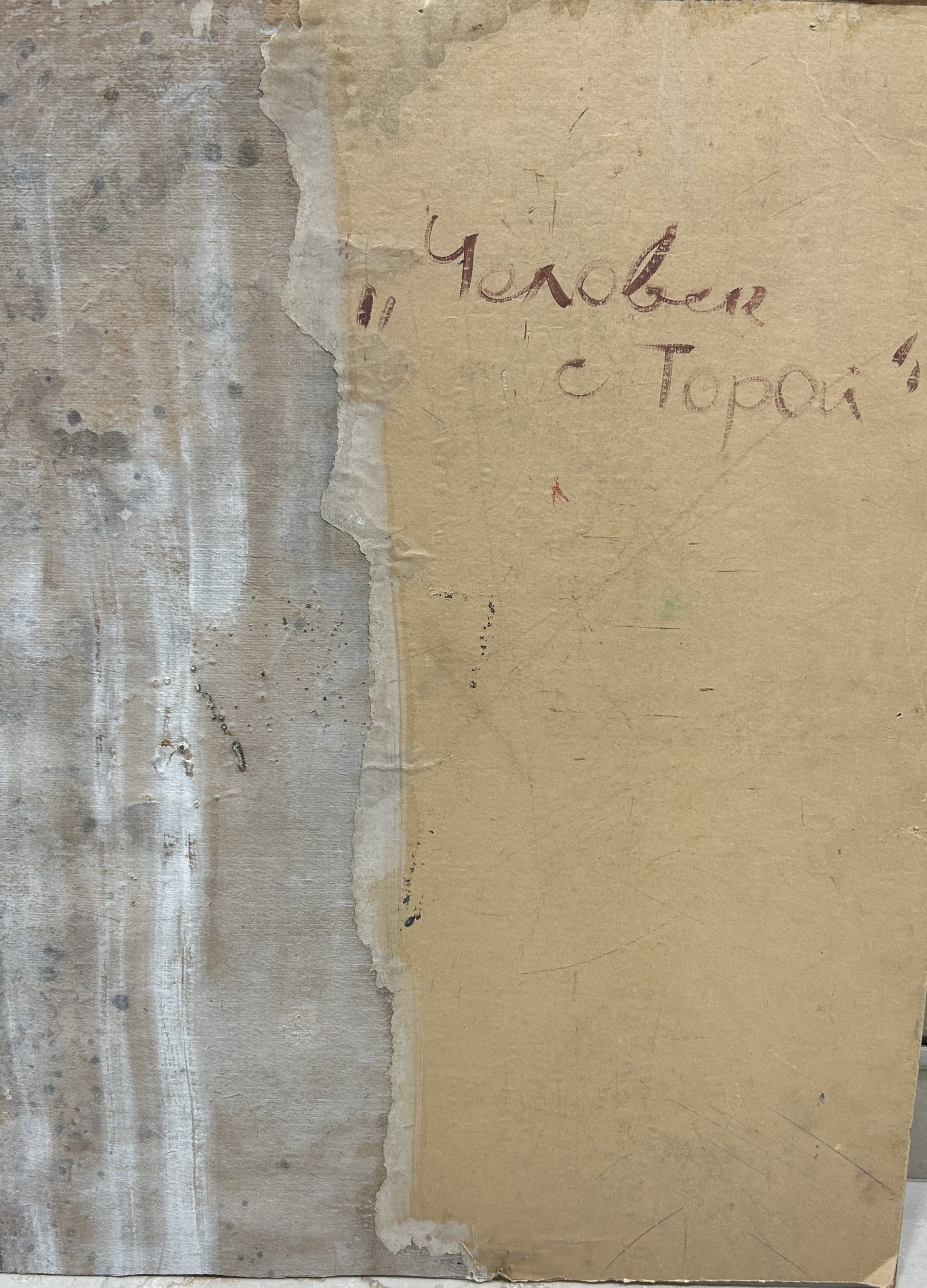 titled in Cyrillic (on the reverse) oil on board 62 x 47cm