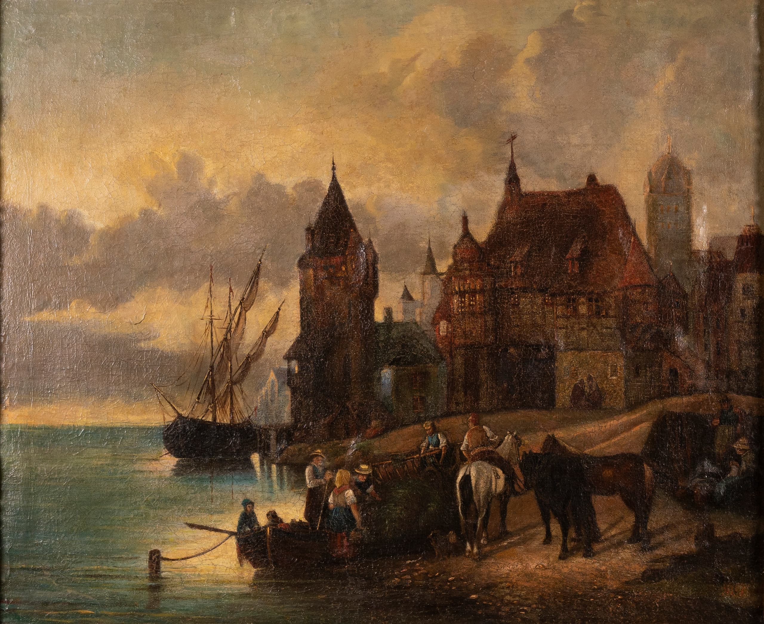 FLEMISH SCHOOL, 19TH CENTURY ATTRIBUTED TO WILHELM ALEXANDER MEYERHEIM (1815-1882) Waterfront Village Scene