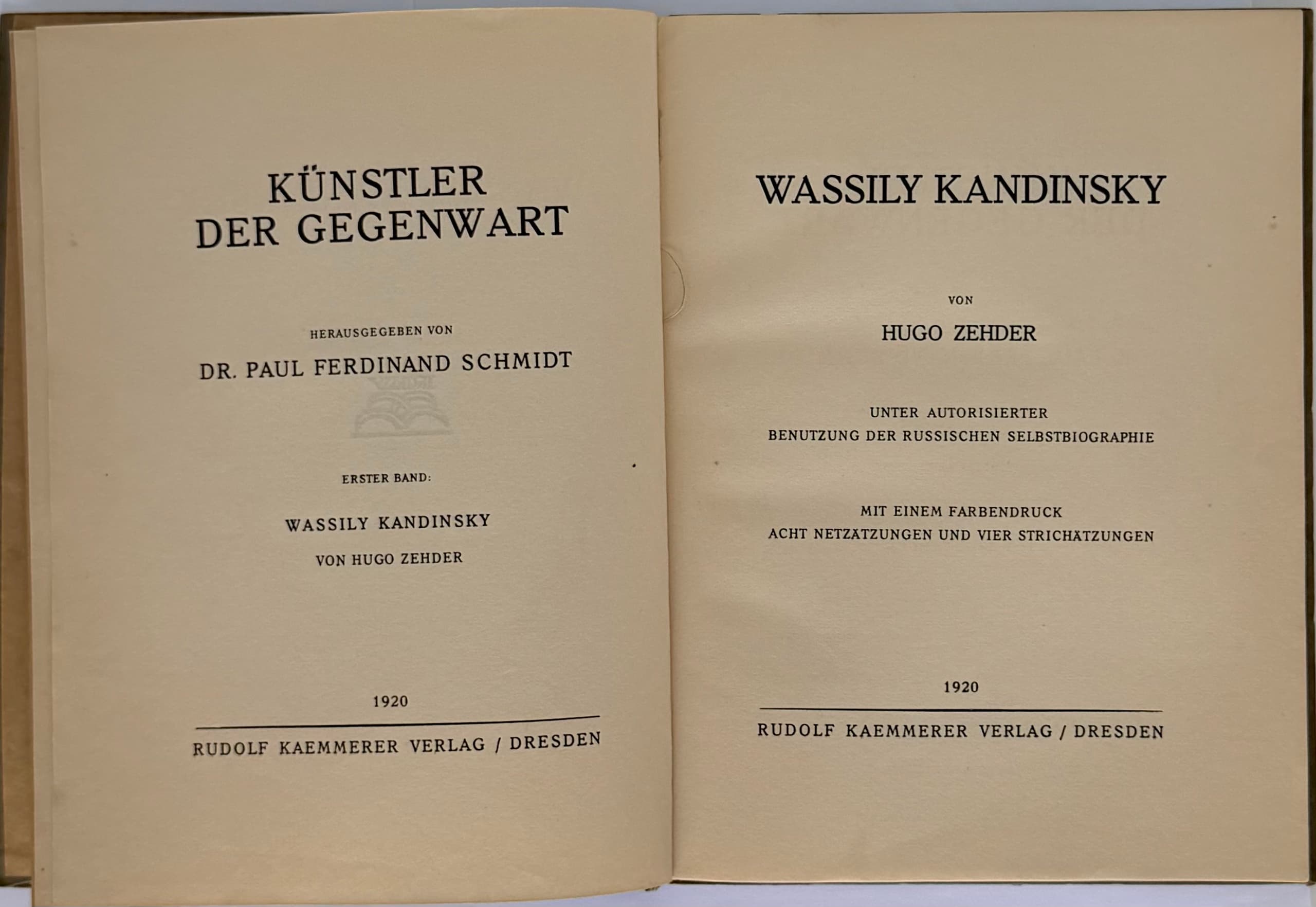 Wassily Kandinsky. Dresden: Rudolf Kaemmerer Verlag, 1920. — 53 pp.: ill., 11 plates. — (Künstler der Gegenwart; Bd. 1).