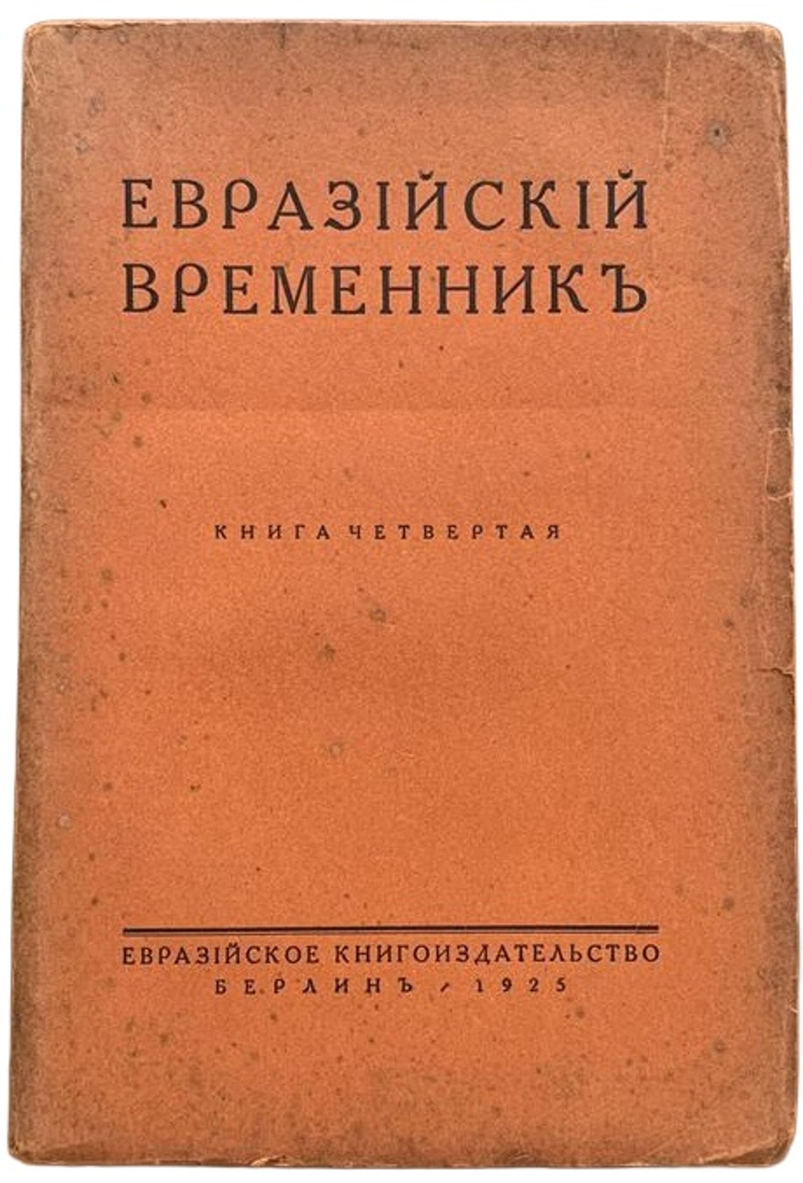 [EURASIANS] Evraziyskiy vremennik: neperiodicheskoe izdanie ['Eurasian Chronicle: Non-Periodical Publication']; edited by Petr Savitskiy, P.P. Suvchinskiy and Prince N.S. Trubetskoy. Book 4. Berlin: Evraziyskoe knigoizdatel’stvo, 1925.