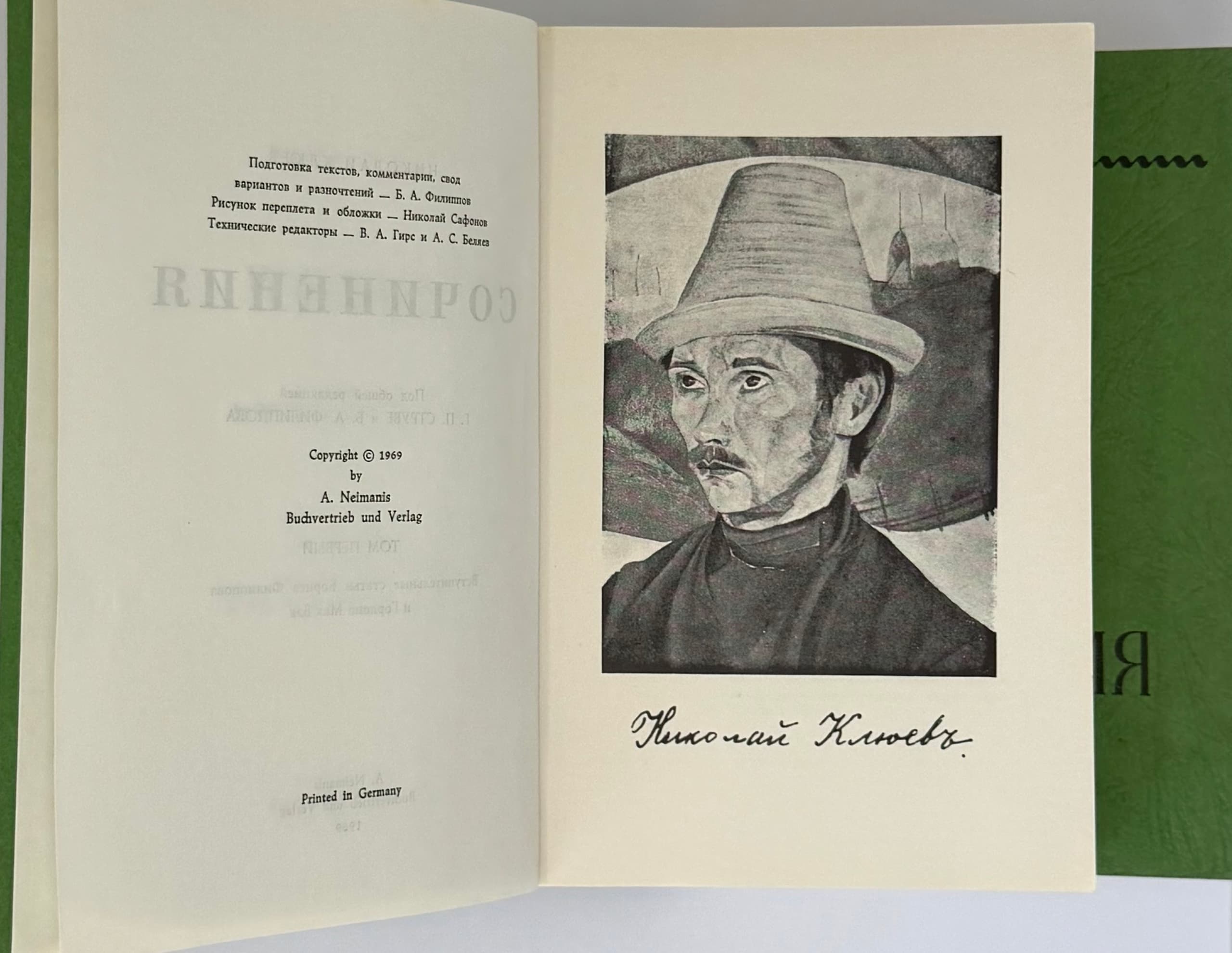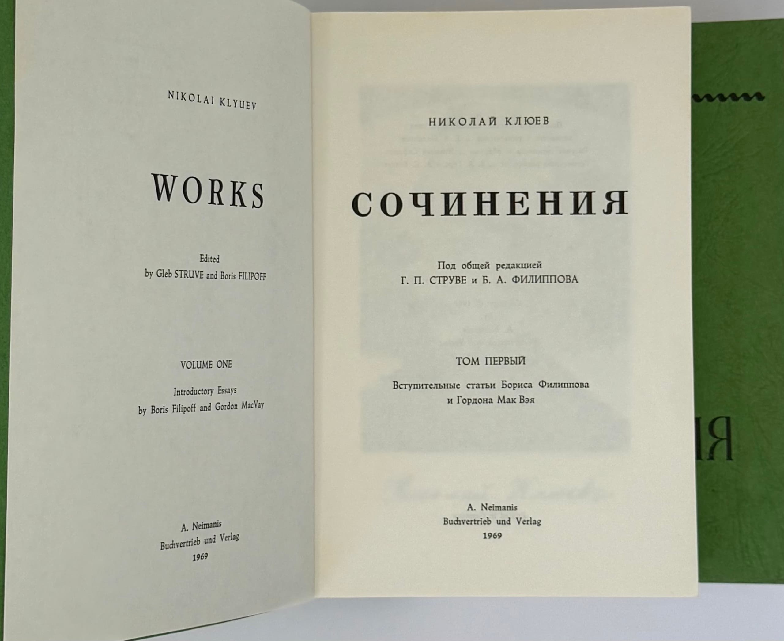 TWO POETRY EDITIONS: 1) AKHMATOVA, A.A. (1889–1966) Rekviem ['Requiem']; translated from Russian by M. Nol’bek. Frankfurt am Main: Posev, 1968. 2) KLYUEV, N.A. (1884–1937) Sochineniya ['Works']; general editors G.P. Struve and B.A. Filippov: in 2 vols. Munich: A. Neimais Buchvertrieb und Verlag, 1969.
