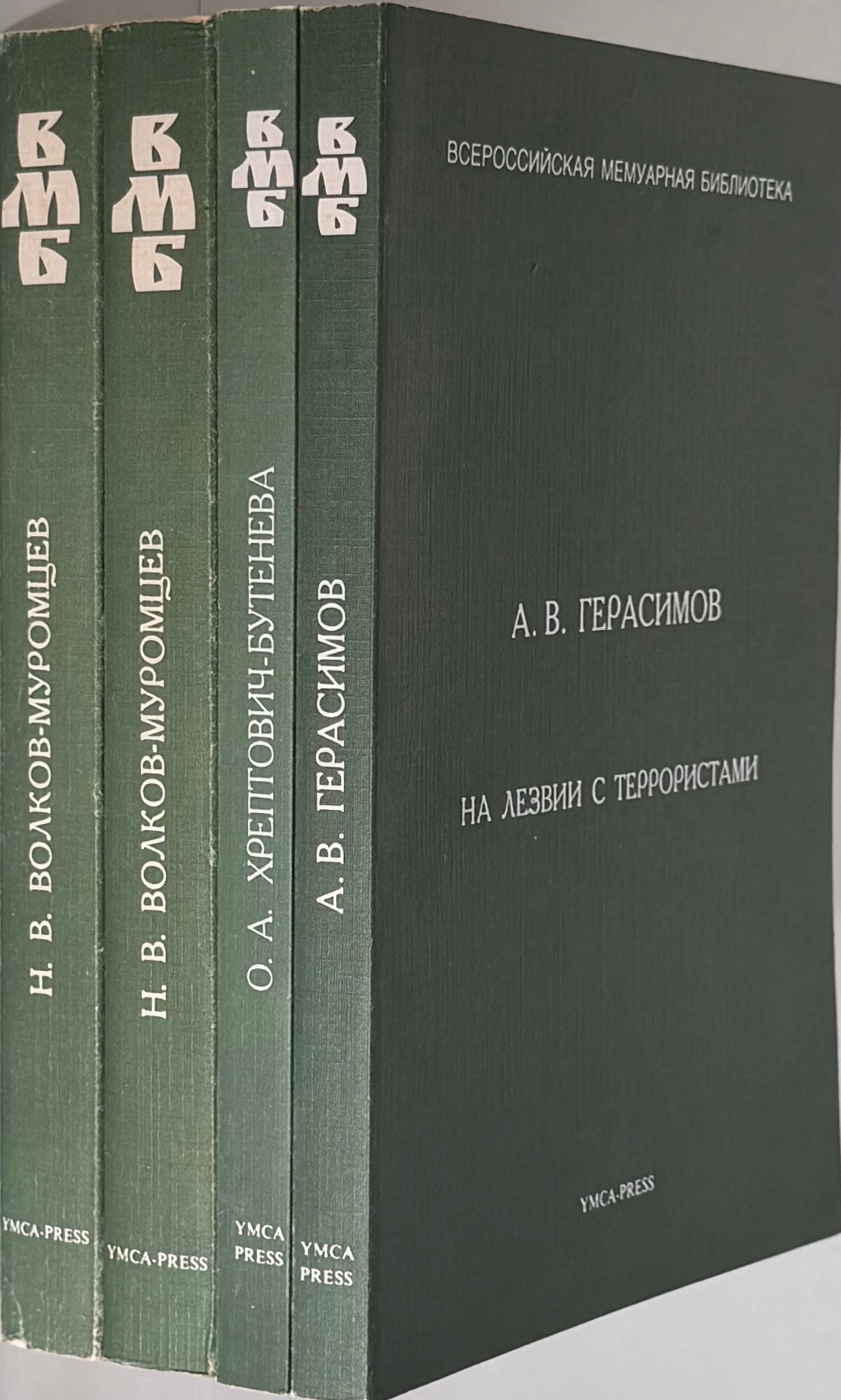 ALL-RUSSIAN MEMOIR LIBRARY Three volumes Vyp. 1: Volkov-Muromtsev, N.V. Yunost’: Ot Vyaz’my do Feodosii (1902–1920). Paris: YMCA-Press, 1983. Vyp. 3: Khreptovich-Buteneva, O.A. Perelom (1939–1942). Paris: YMCA-Press, 1984 Vyp. 4: Gerasimov, A.V. Na lezvii s terroristami. Paris: YMCA-Press, 1985.