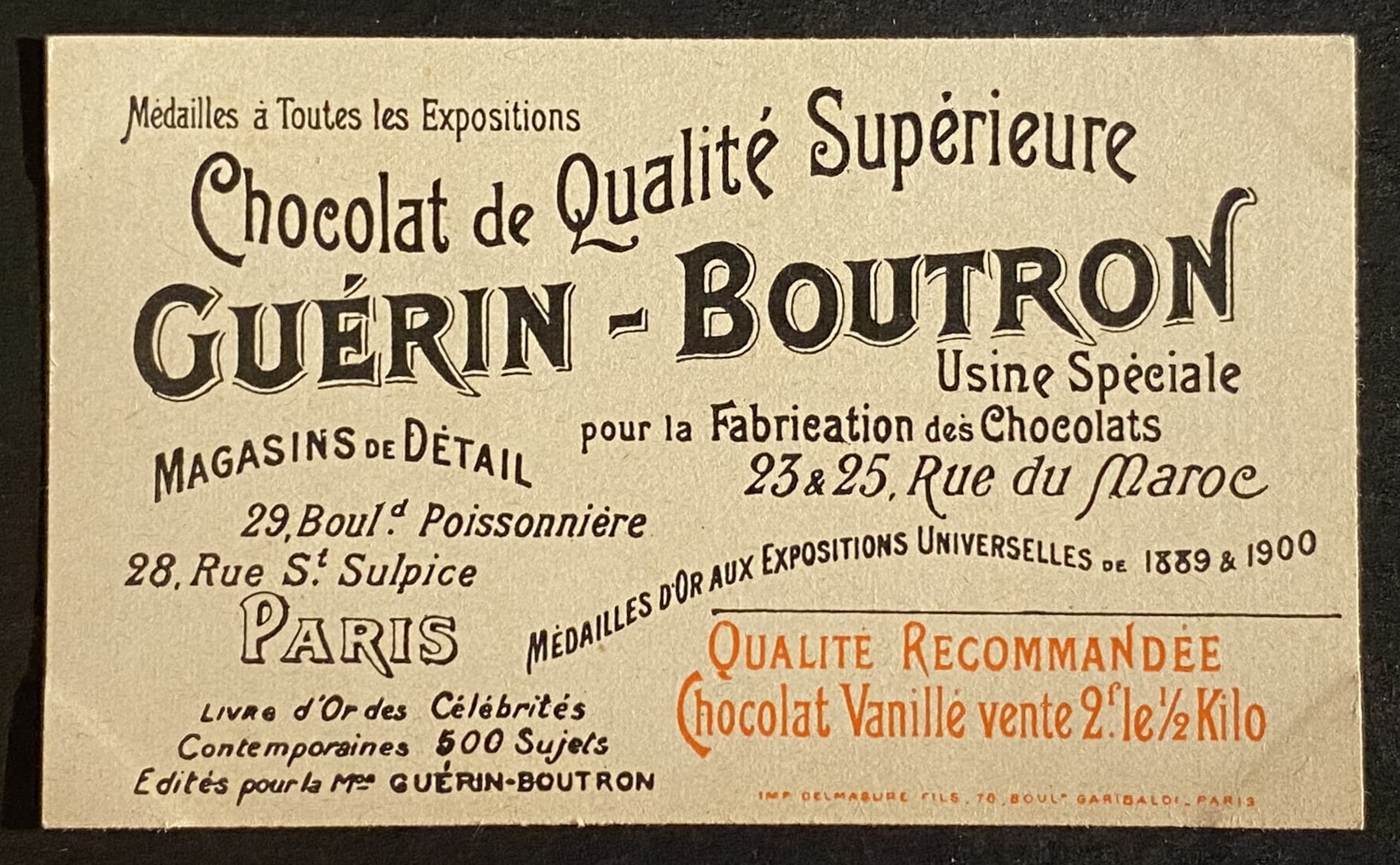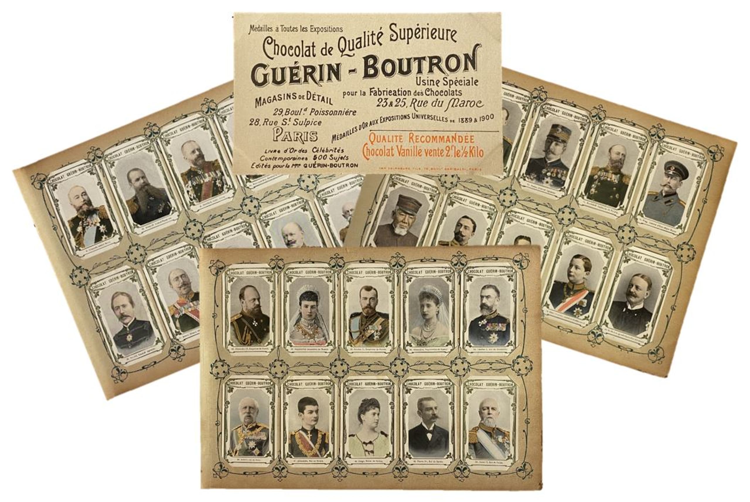 Founded in France in 1775, the Guérin-Boutron chocolate factory was one of the first companies to embrace advertising imagery, incorporating chromolithographic prints into its chocolate bars and creating limited editions featuring historical or fictional characters.