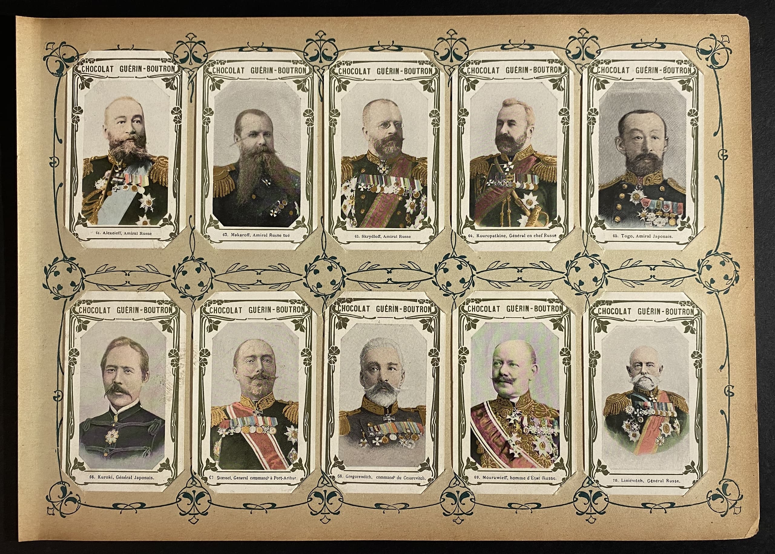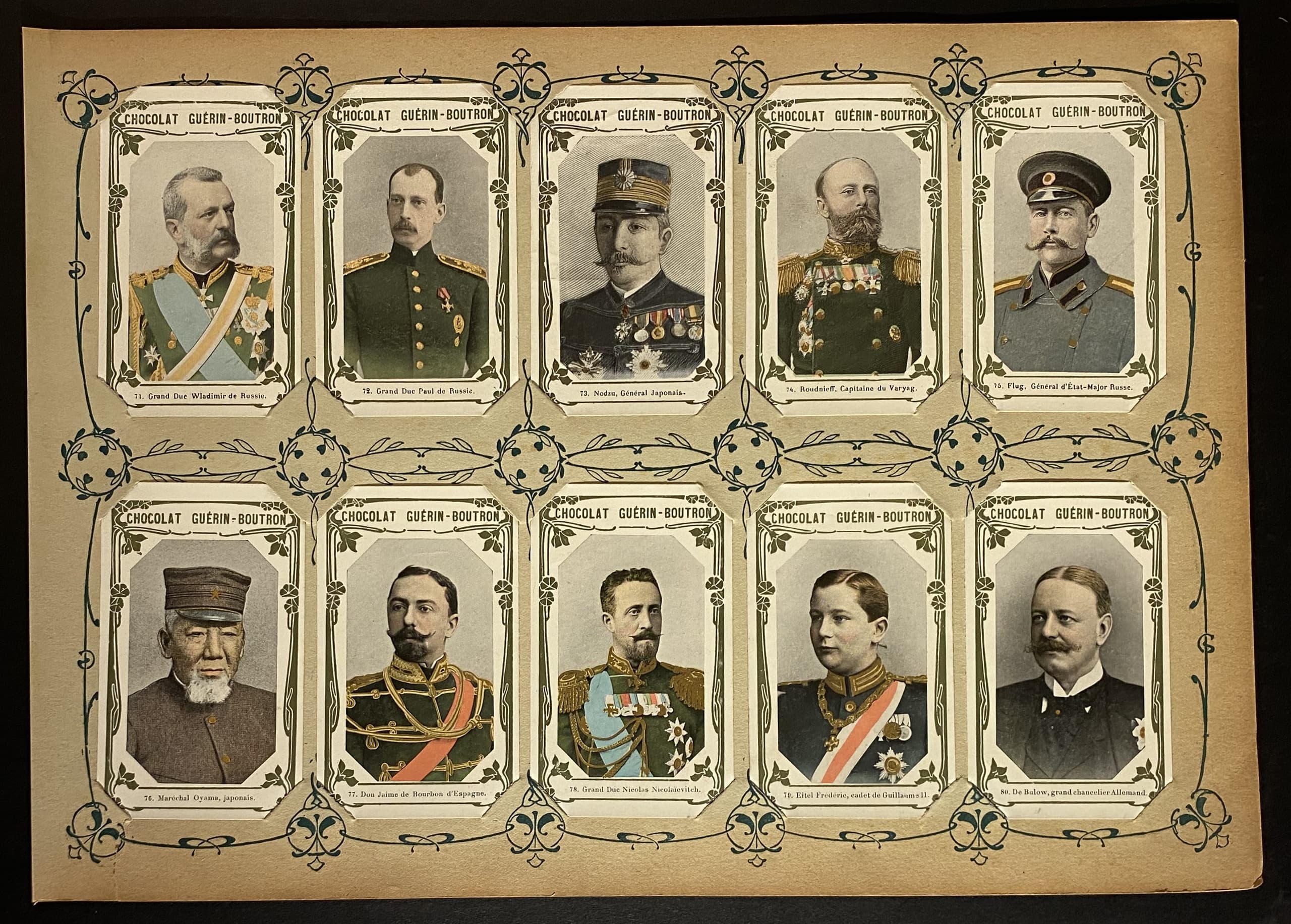 MAISON CHOCOLAT GUÉRIN-BOUTRON, FOUNDED IN THE 18TH CENTURY IN PARIS. CHROMOLITHOGRAPHIC PORTRAITS. 30 CHROMOLITHOGRAPHS FROM THE GUEST BOOK OF CONTEMPORARY CELEBRITIES, PUBLISHED FOR MAISON GUÉRIN-BOUTRON.