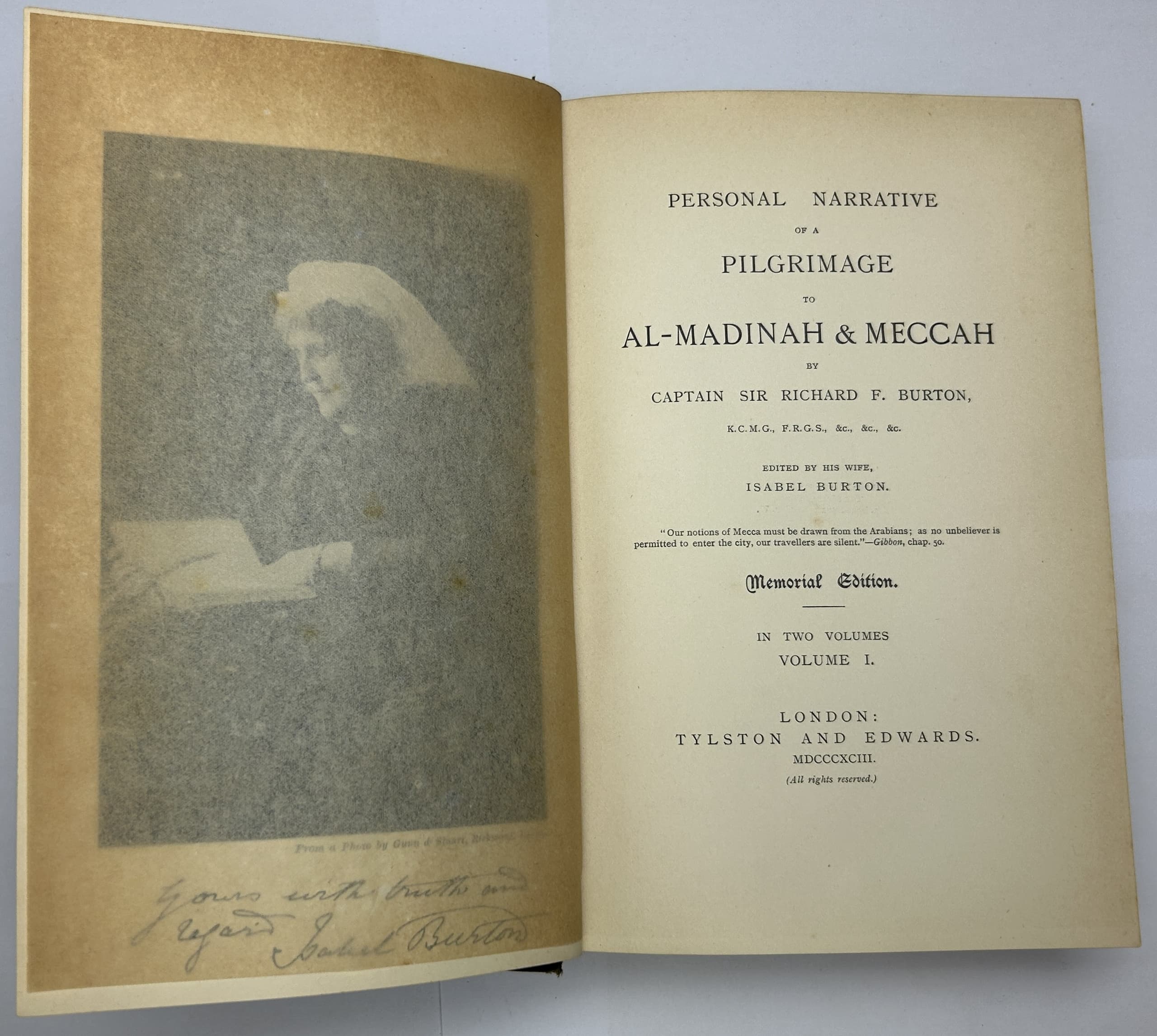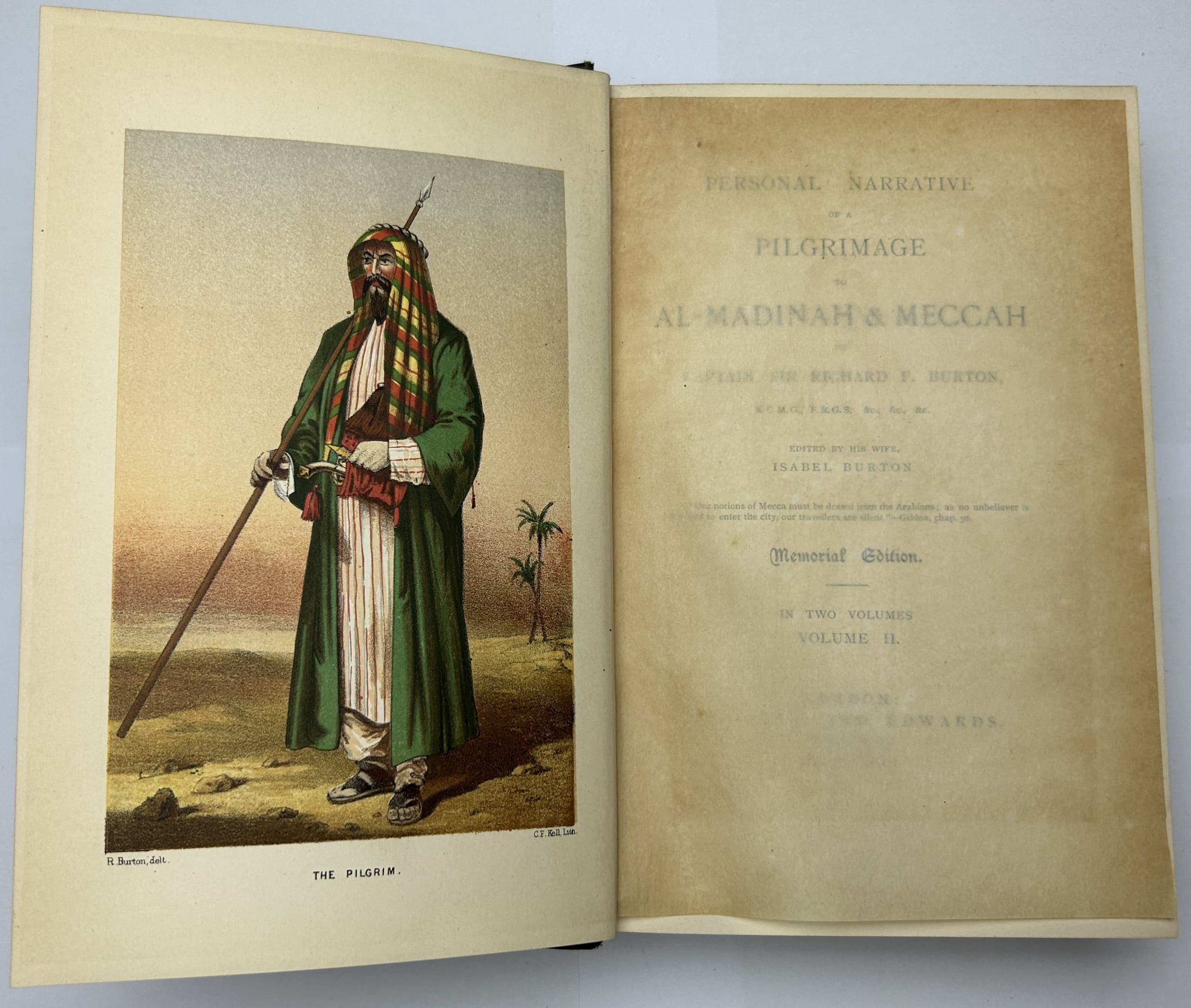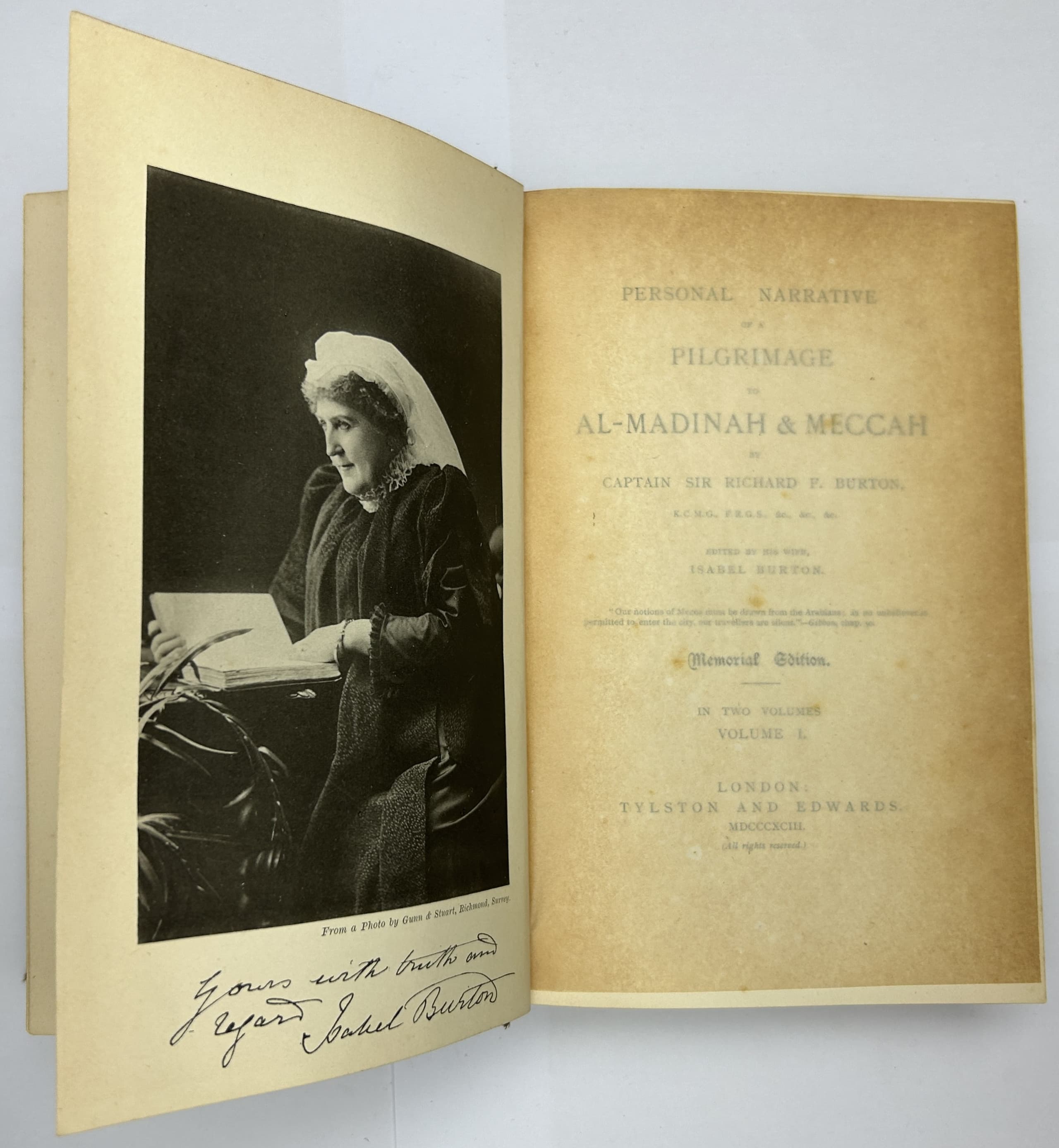 BURTON, RICHARD F (1821-1890), CAPTAIN SIR Personal Narrative of a Pilgrimage to Al-Madinah and Mecca. Memorial edition. London: Tylston and Edwards, 1893.