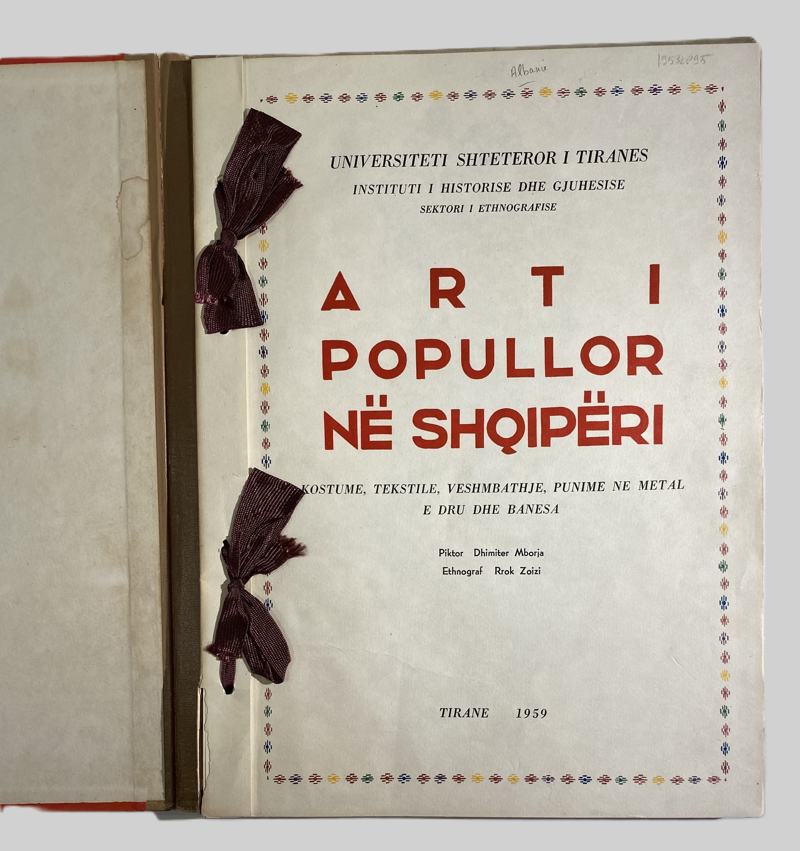 ALBANIA - ARTI POPULLOR NE SHQIPERI FOLK ART IN ALBANIA DHIMITER MBORJA - RROK ZOIZI FIRST EDITION, 1959. 1 VOLUME. IN ALBANIAN.