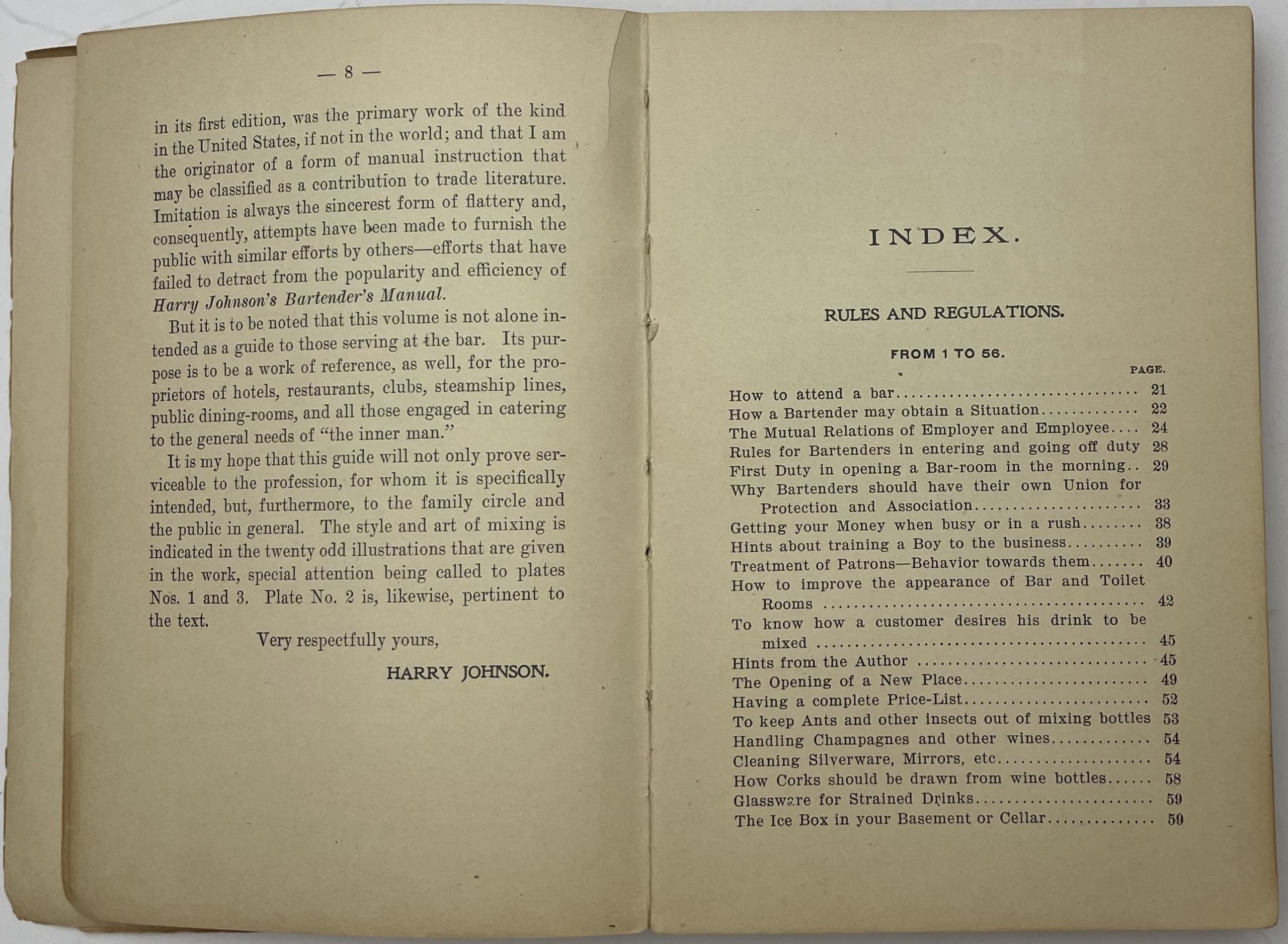 HARRY JOHNSON (1845-1936) HARRY JOHNSON’S BARTENDERS’ MANUAL. THE NEW AND IMPROVED ILLUSTRATED BARTENDERS’ MANUAL OR HOW TO MIX DRINKS OF THE PRESENT STYLE. REVISED EDITION.