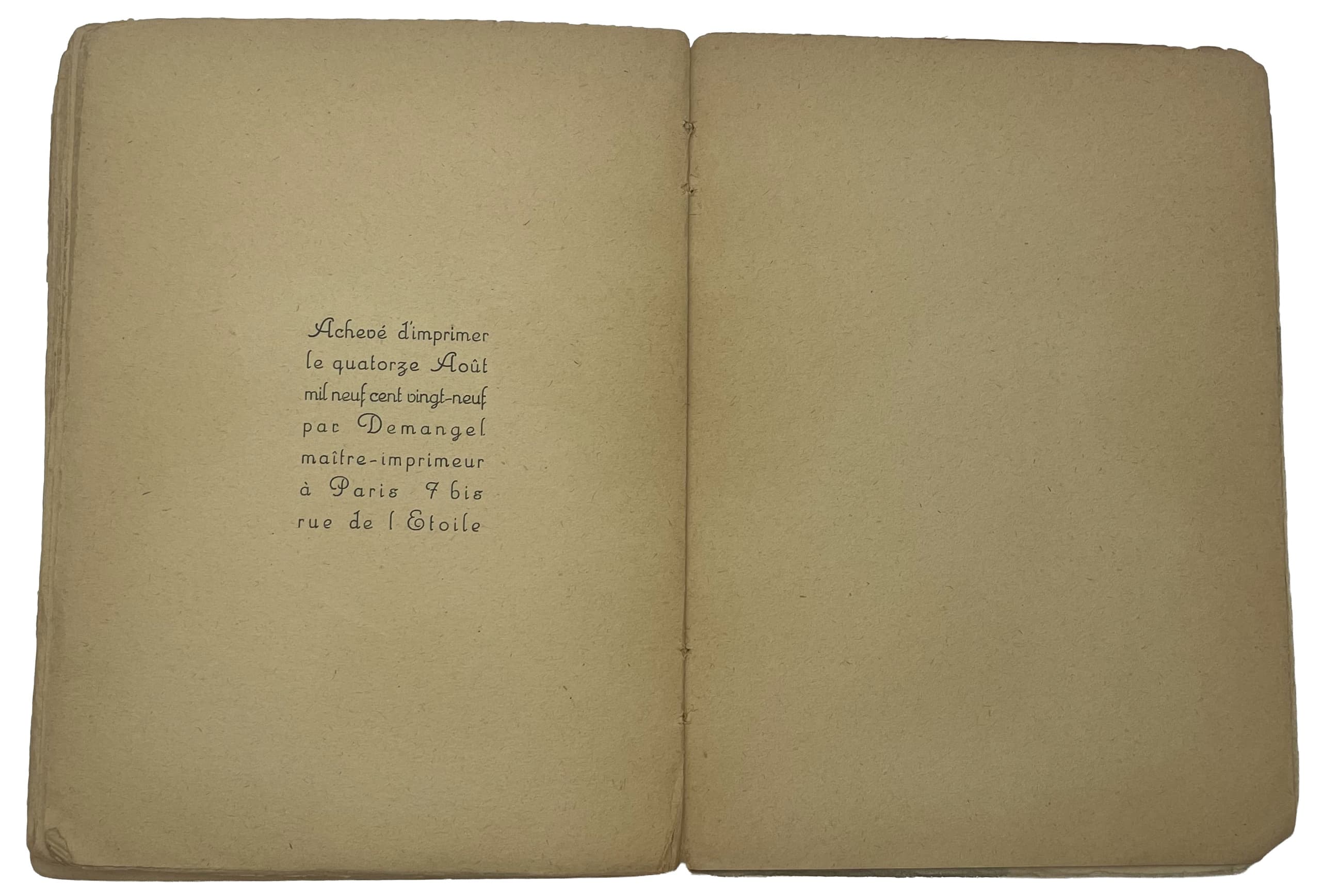 Printed on 14 August 1929 by Demangel, master printer, at 7 bis rue de l’Étoile, Paris.