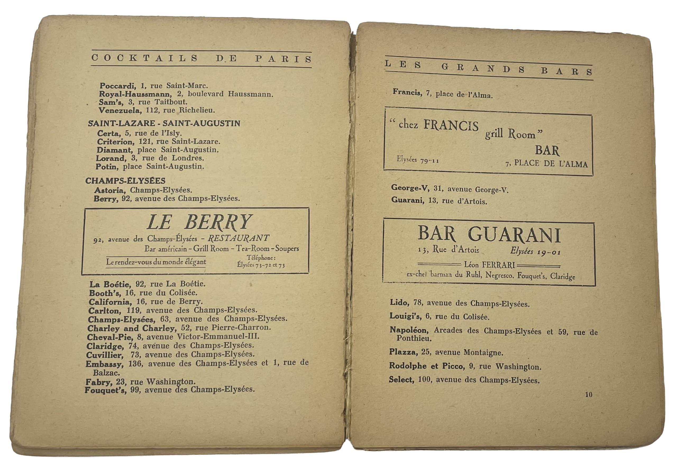 This collection serves as an illustrated guide to Parisian cocktails, complete with recipes for accompanying dishes. A definitive reference work on the Parisian cocktails of the era, it perfectly captures the cocktail culture of the time as well as its distinctive Art Deco aesthetic.