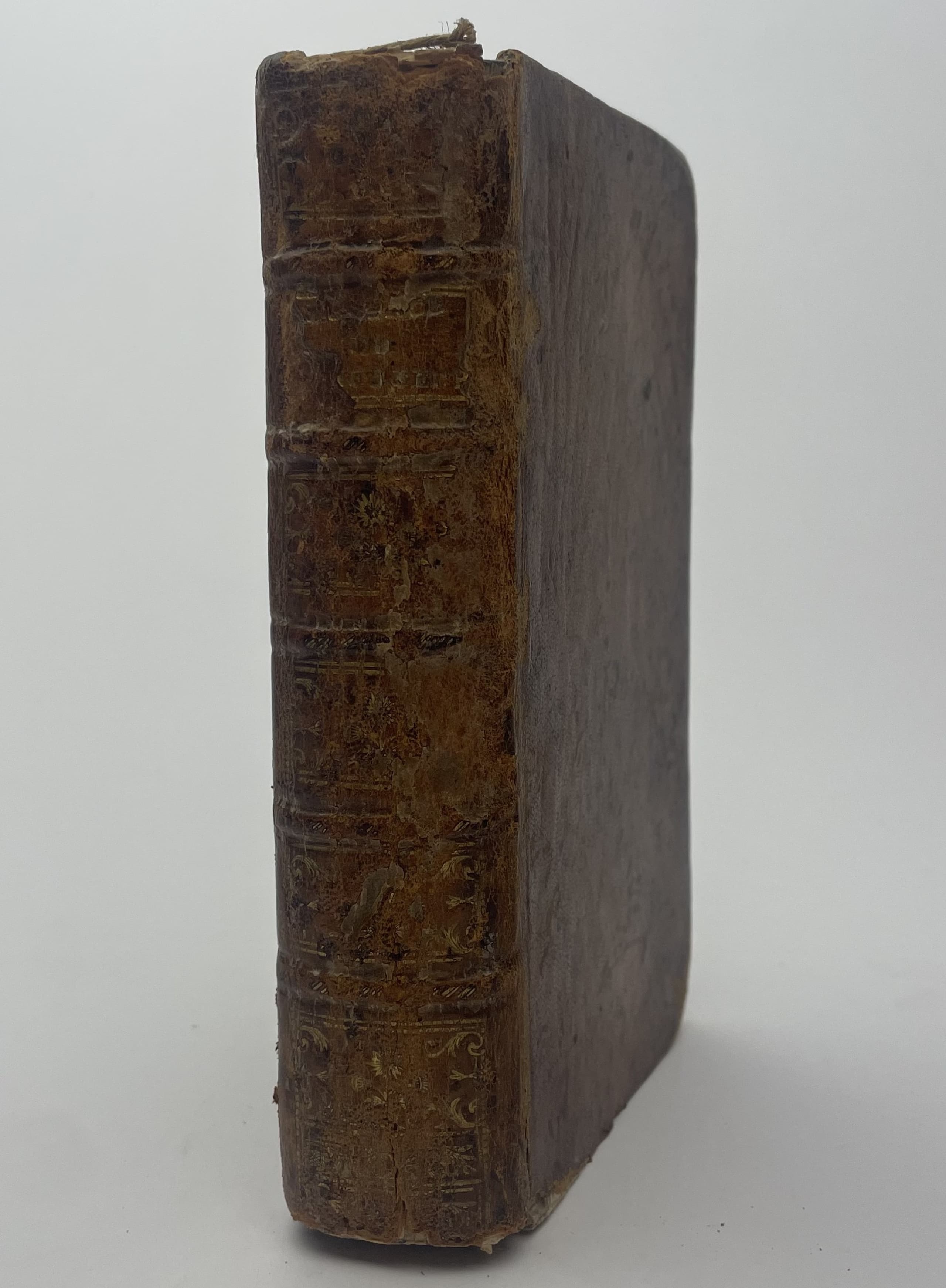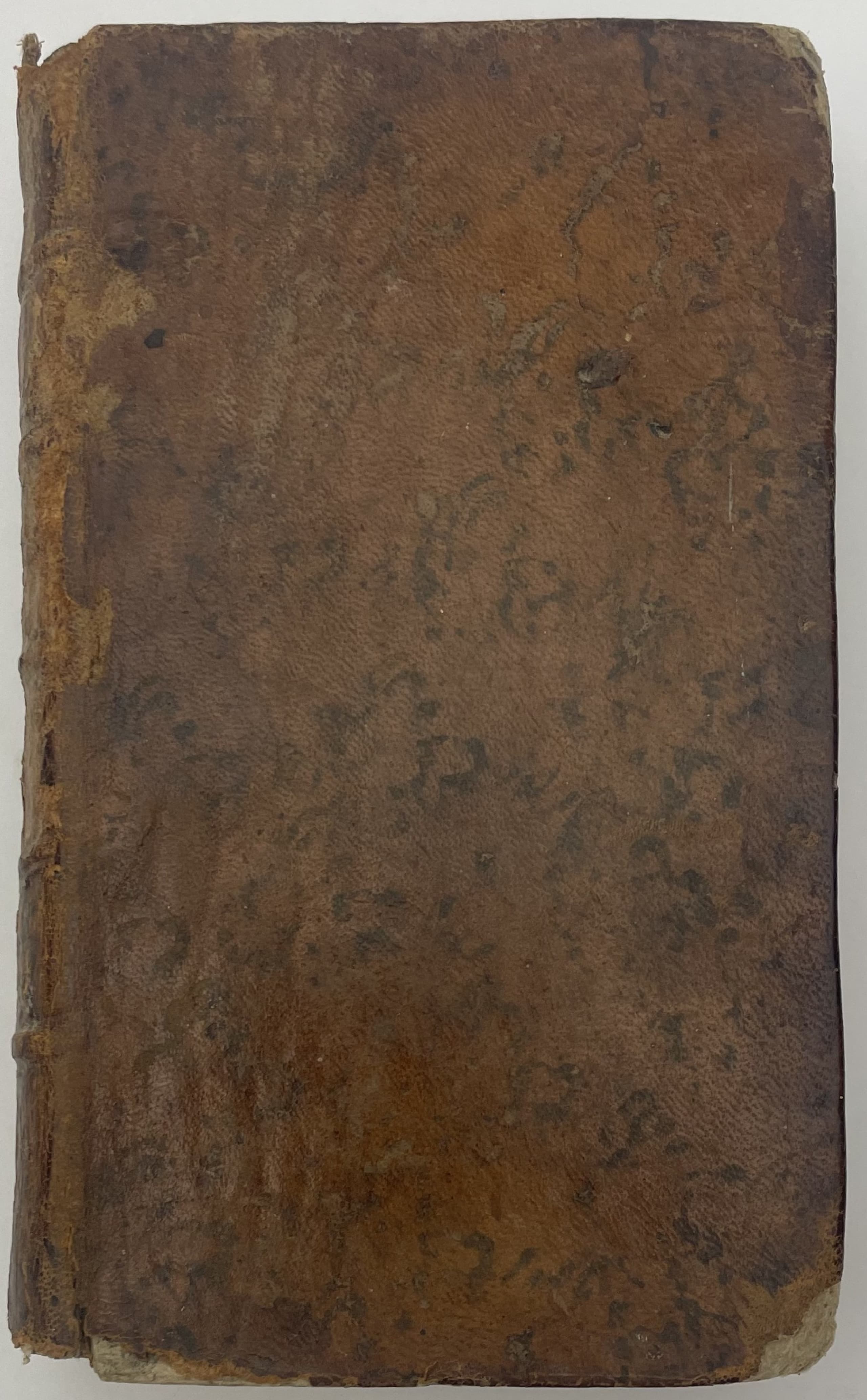 Binding and spine worn, scuffing, rubbing, loss of leather, corners worn, cap ends worn away, foxing, soiling, water stains.