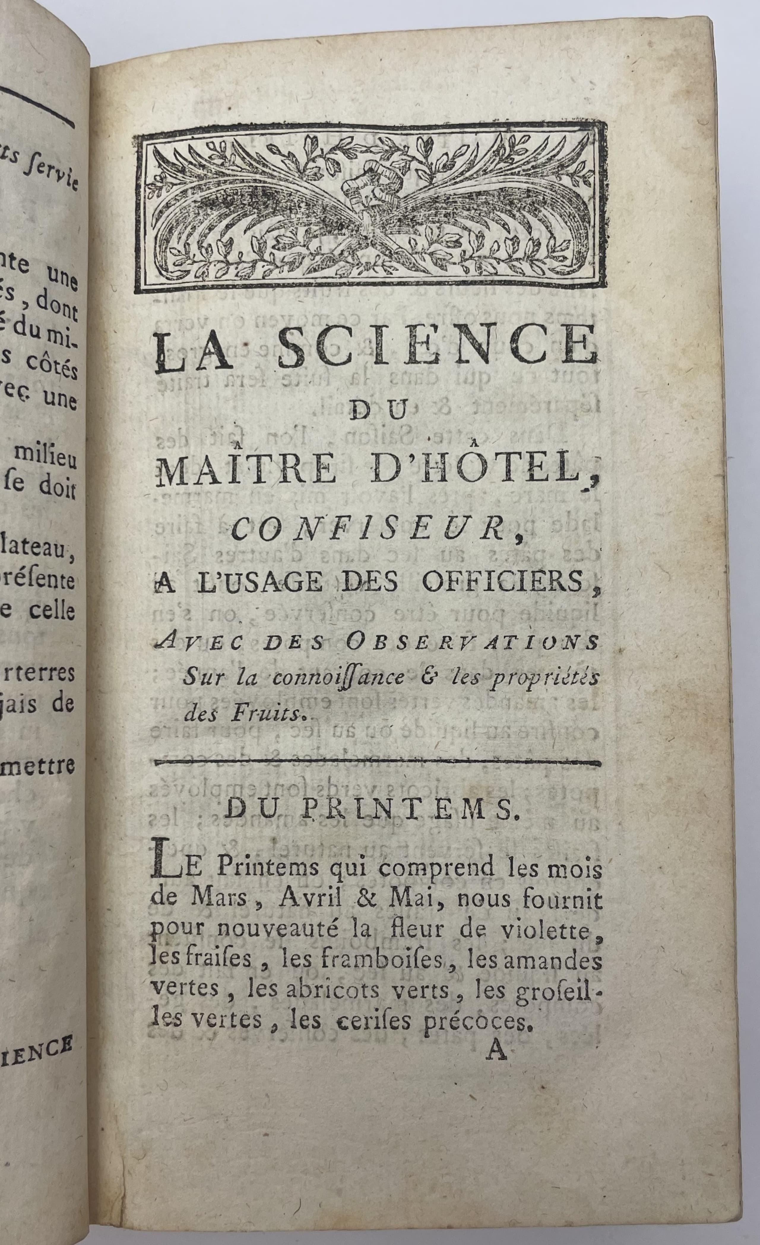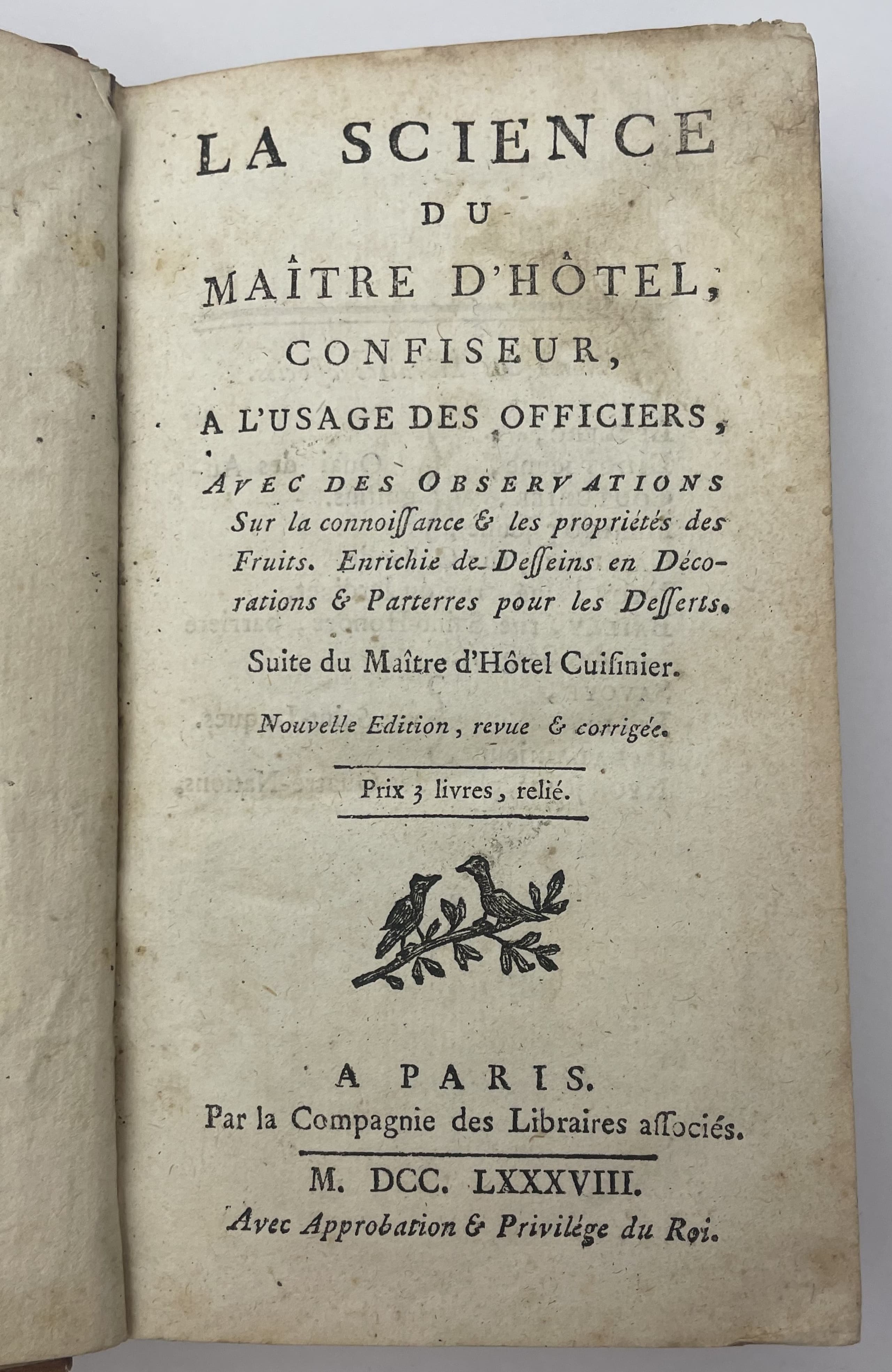 JOSEPH MENON (1700?-1771) LA SCIENCE DU MAÎTRE D’HÔTEL, CONFISEUR, A L’USAGE DES OFFICIERS, AVEC DES OBSERVATIONS SUR LA CONNAISSANCE & LES PROPRIÉTÉS DES FRUITS. [THE ART OF THE MAÎTRE D’HÔTEL AND CONFECTIONER, FOR THE USE OF OFFICERS, WITH OBSERVATIONS ON THE NATURE AND PROPERTIES OF FRUIT] NEW EDITION, 1788. 1 VOLUME IN FRENCH.