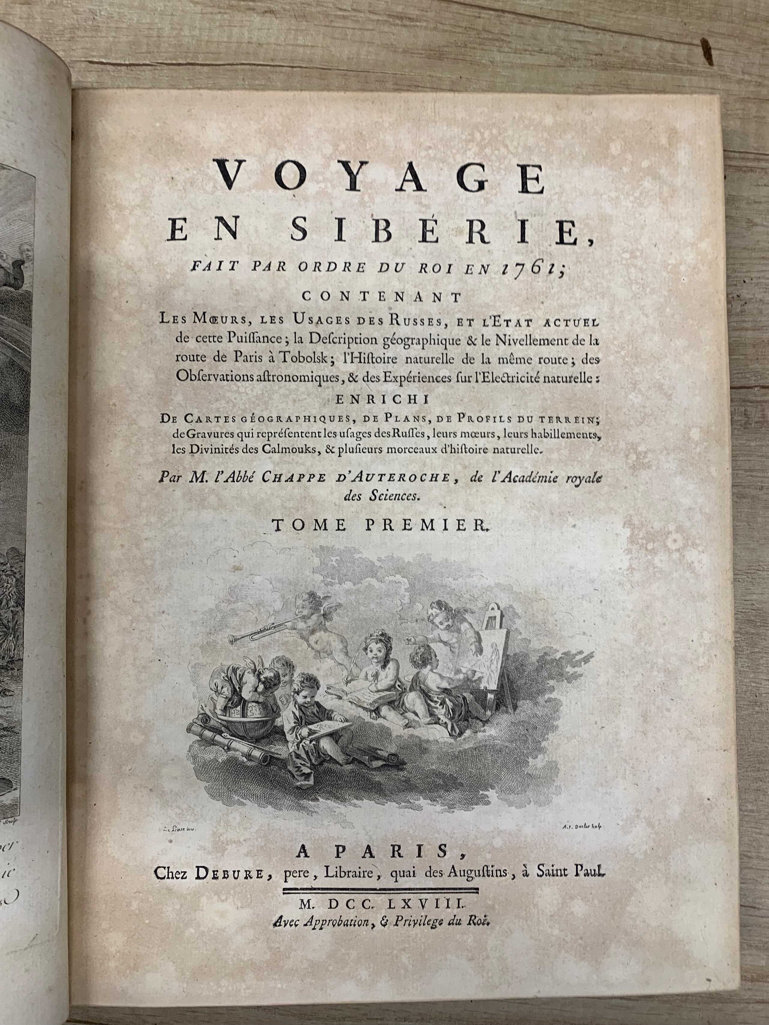 In 1761, Jean-Baptiste Chappe d'Auteroche travelled to Tobolsk to observe a rare astronom-ical phenomenon, stayed in Russia for about a year, and in 1768 published a luxurious book in Paris on exquisite paper with magnificent illustrations. The abbot was accompanied on his journey by Boucher's pupil, the artist Jean-Baptiste Le Prince, who was working in Rus-sia at the time. Le Prince, ‘translated’ his sketches into etchings and engravings, illustrating the abbot's work and turning the traveller's book into a true masterpiece of Rococo art. The fifty-six engravings by Le Prince, that adorned the folios became a lasting historical docu-ment, testifying to the most diverse aspects of Russian life in the 18th century.