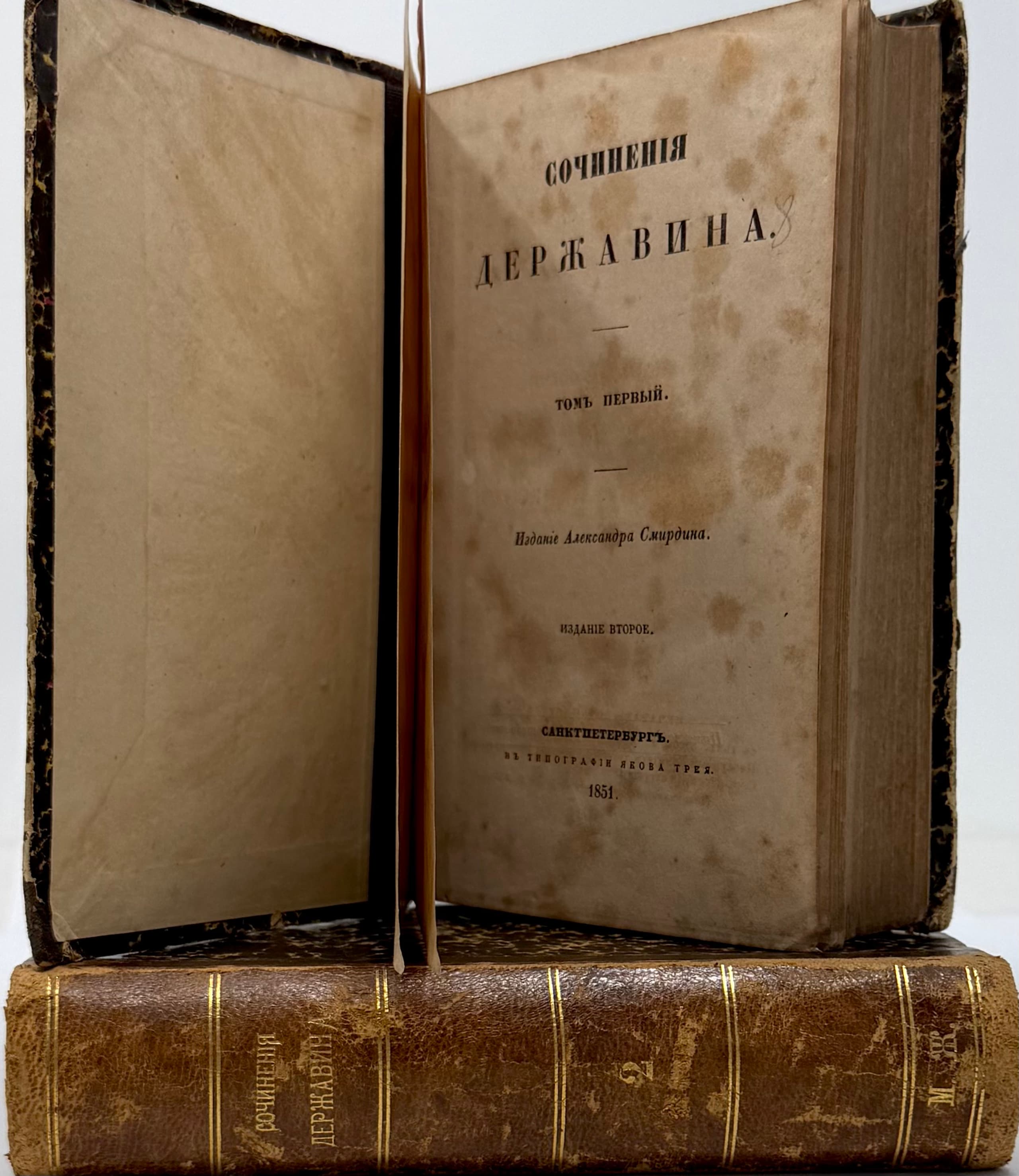 Sochineniya Derzhavina [Works of Derzhavin]: [in 2 vols.]. — 2nd ed. St Petersburg: printed by Ya. Trey, 1851.
