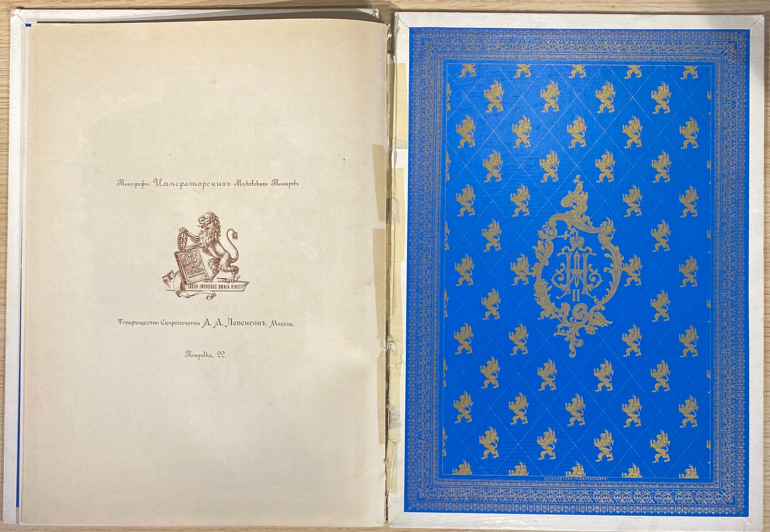CORONATION OF NICHOLAS II AND ALEXANDRA FYODOROVNA (1896) Program of the solemn performance at the Imperial Bolshoi Theater in Moscow on May 17, 1896, on the occasion of the sacred coronation of His Imperial Majesty Emperor Nicholas Alexandrovich and Her Imperial Majesty Empress Alexandra Fyodorovna. Moscow: A.A. Levenson Partnership, 1896.