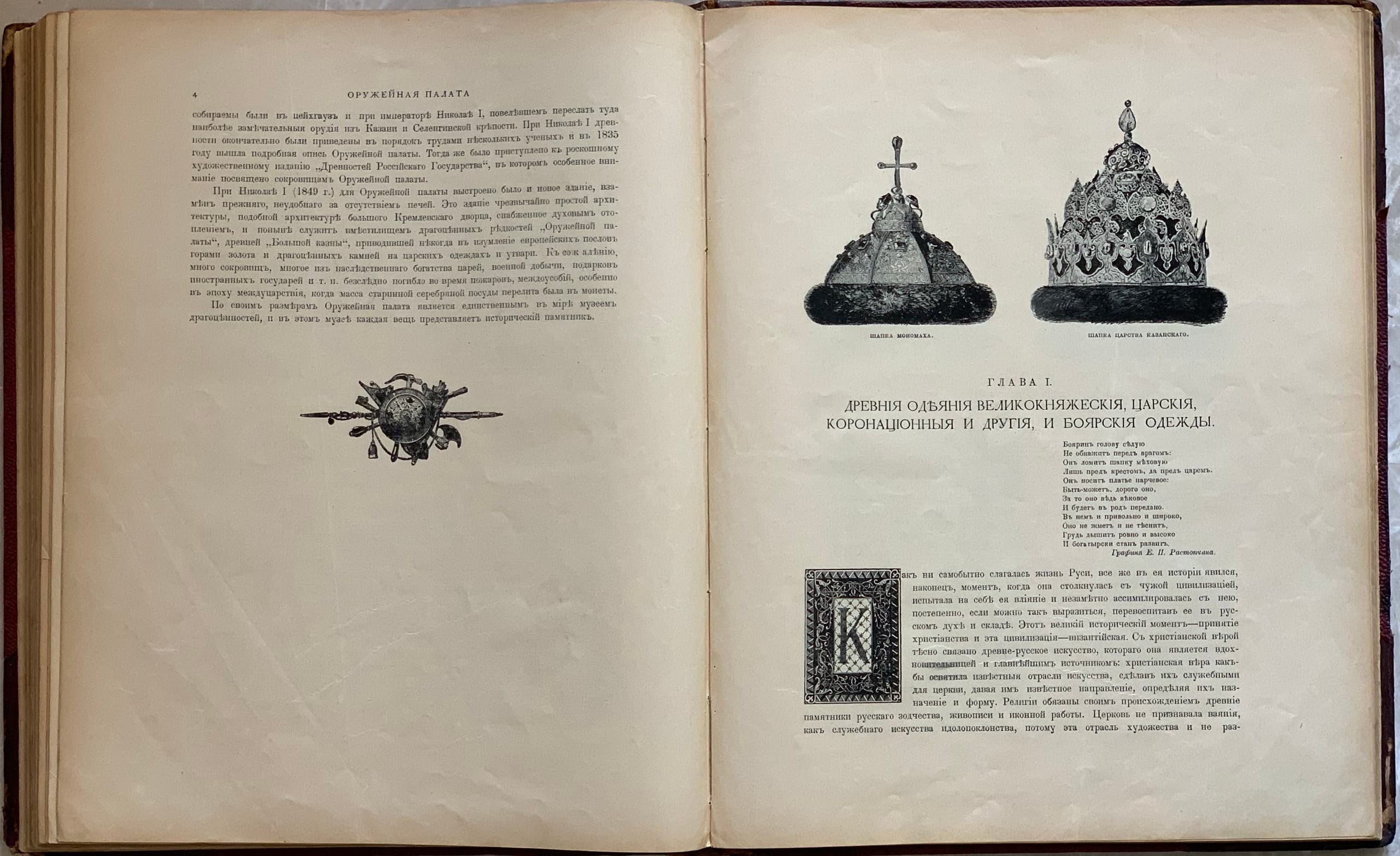 Moskovskaya Oruzheynaya palata ['The Moscow Armoury Chamber'] / text by N.A. Nadezhdin. St Petersburg; Moscow: t-vo M.O. Vol’f, cens. 1902. — [2], 55 pp.: ill., 1 frontispiece; 35 × 28 cm.