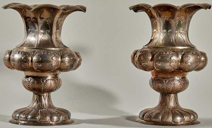 PAIRE DE VASE SUR PIED EN METAL ARGENTÉ