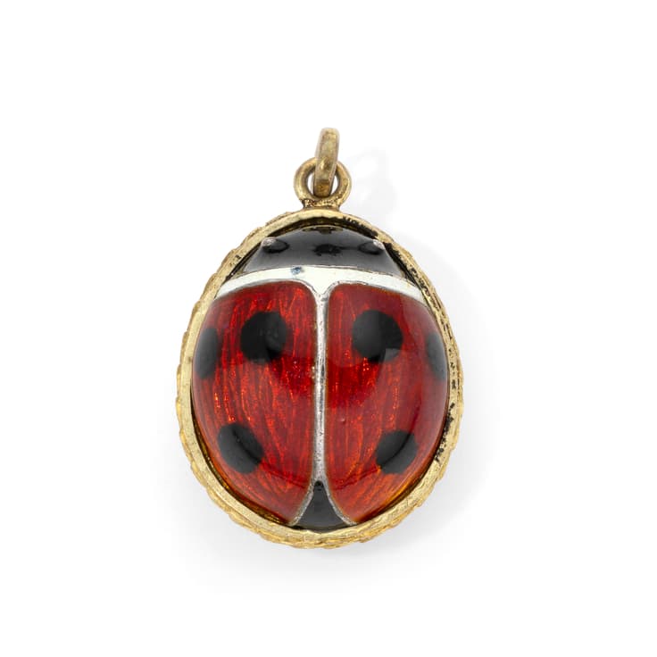 pendentif en argent doré figurant une coccinelle peinte à l’émail