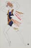 ⊕ NATALIA GONCHAROVA (1881-1962) Danseuse debout, bras levés, avec une ceinture violette Esquisse de costume pour le ballet ‘Le Temps des Tatares’