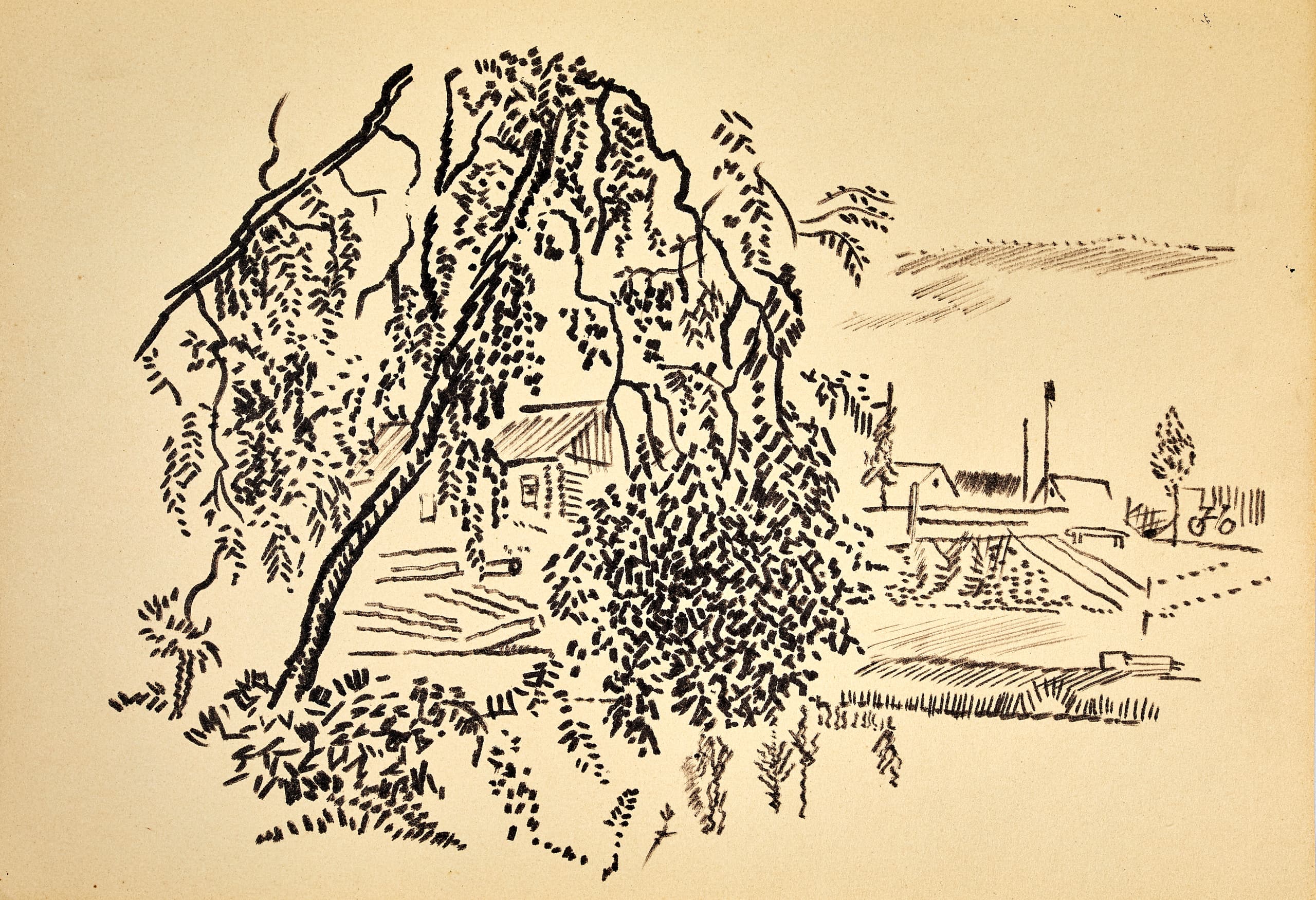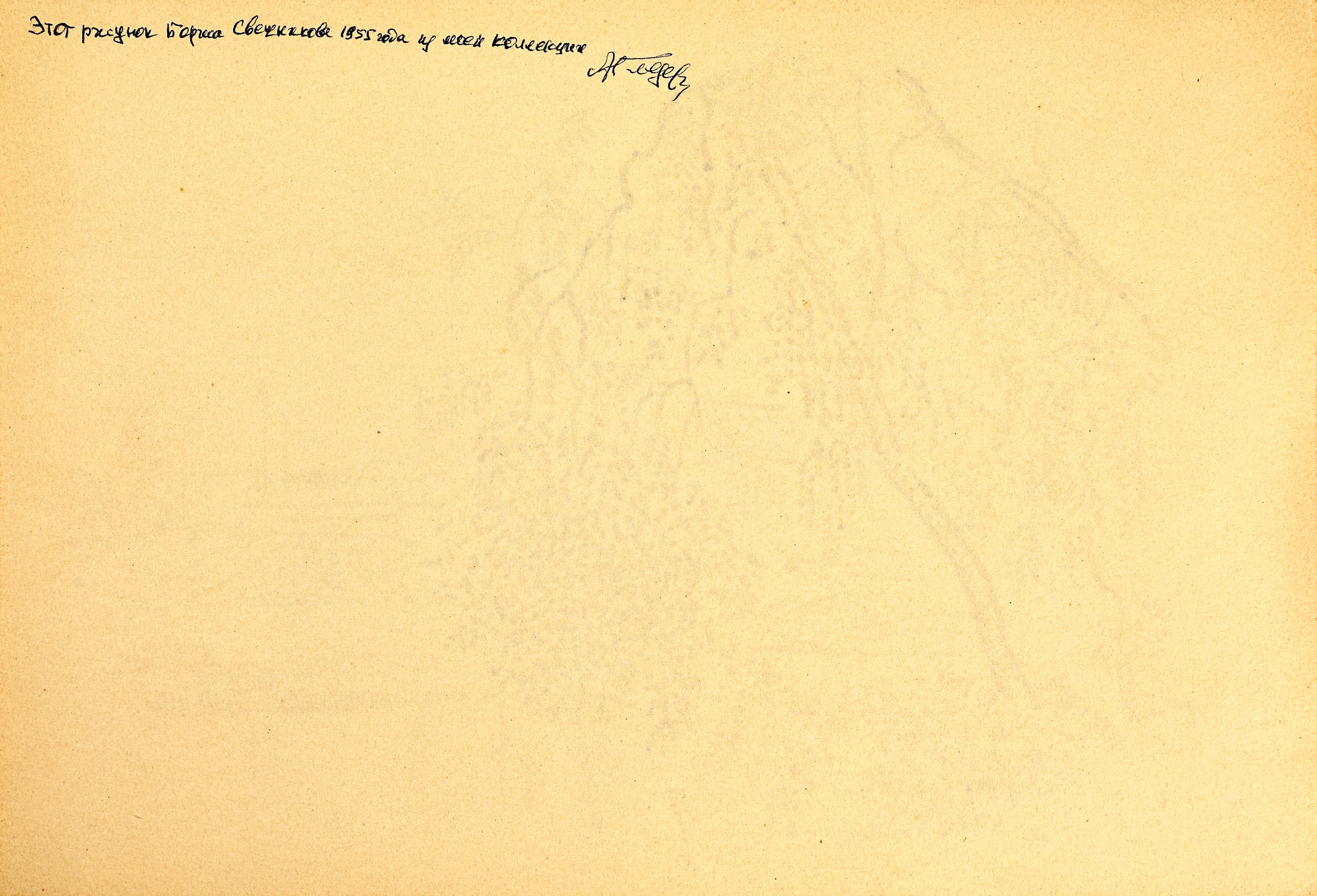 inscrit au stylo en cyrillique par Alexander Glezer ‘ce dessin de Boris Sveshnikov daté de 1955 provient de ma collection. A. Glezer’ (au verso)