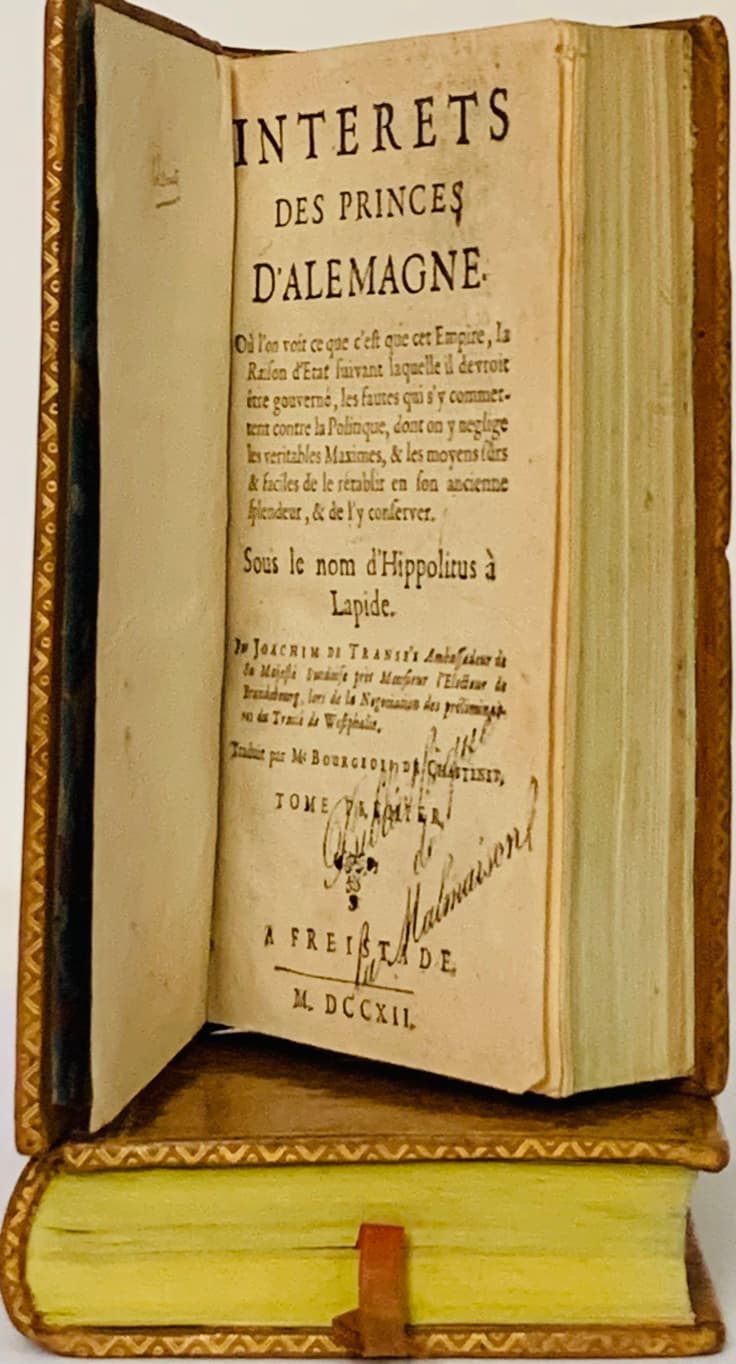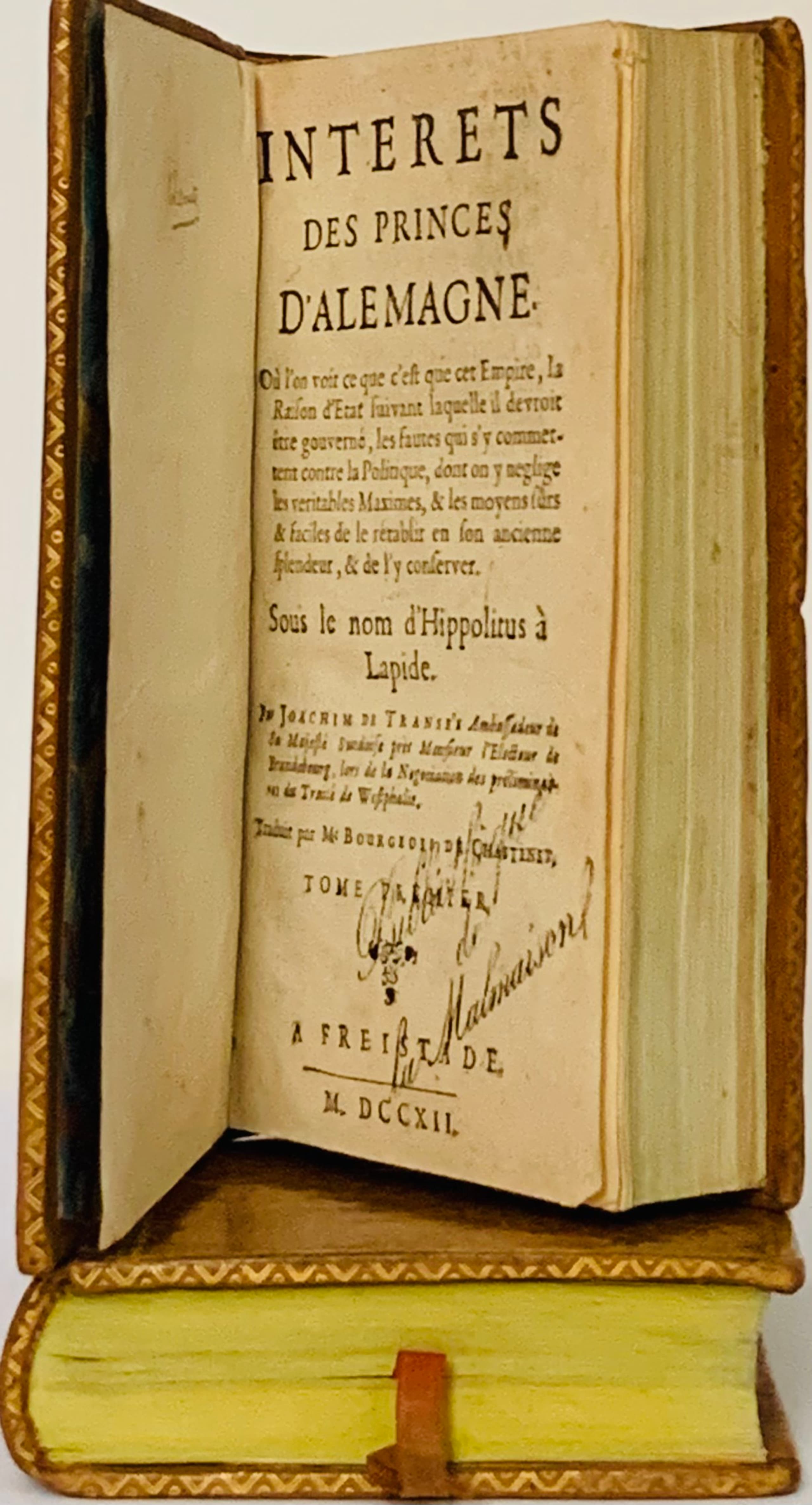 EXEMPLAIRE DE NAPOLÉON BONAPARTE ET DE JOSÉPHINE BOGISLAUS PHILIPP VON CHEMNITZ (1605-1678) Intérêts des princes d’Alemagne. Trad. par Bourgeois du Chastenet. Freistade [Amsterdam], 1712. 2 vol in-12. V. 1. 405 p., V. 2. 415 p.