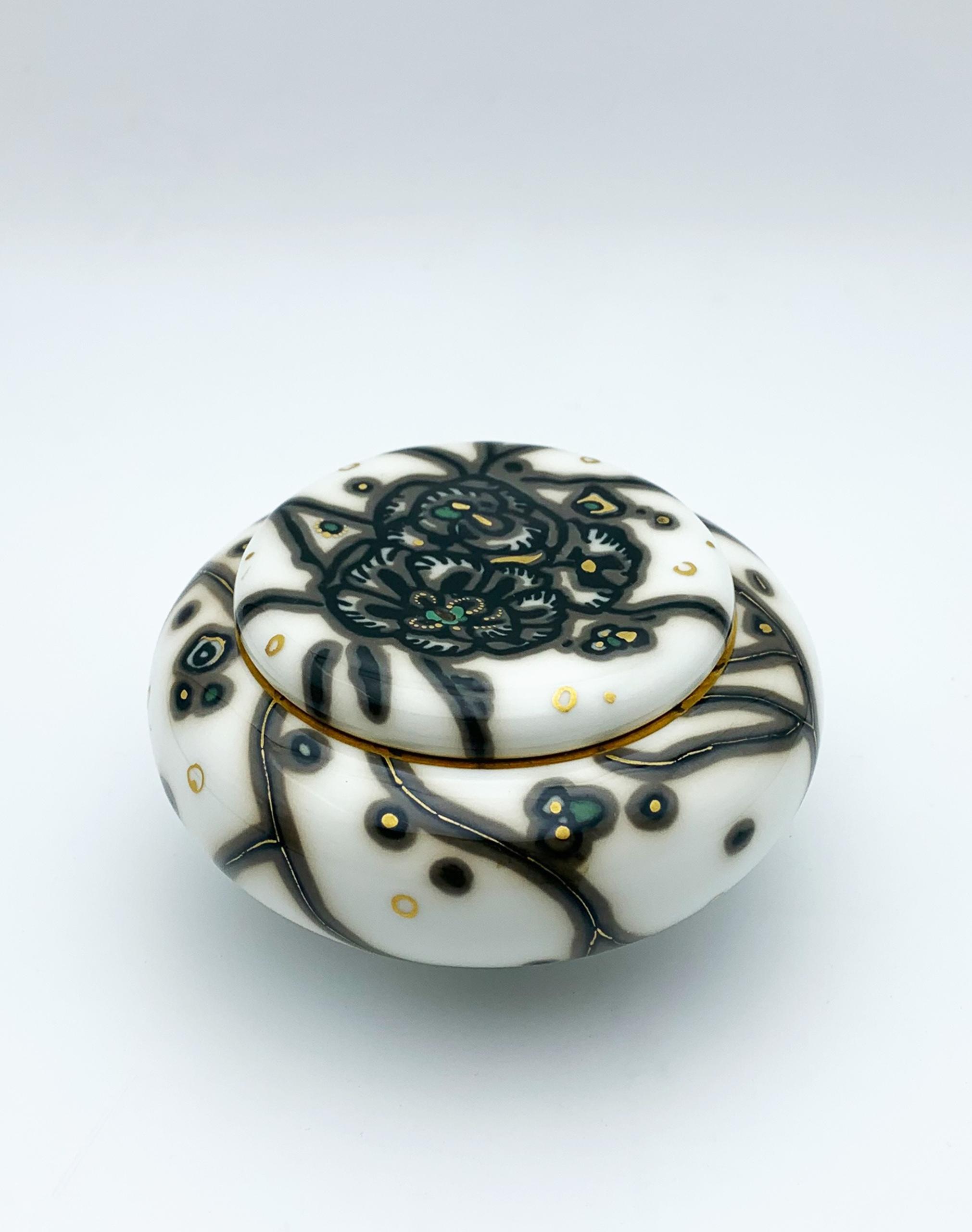 ANNE-MARIE FONTAINE MANUFACTURE NATIONALE DE SEVRES Polychrome and gilded porcelain candy box