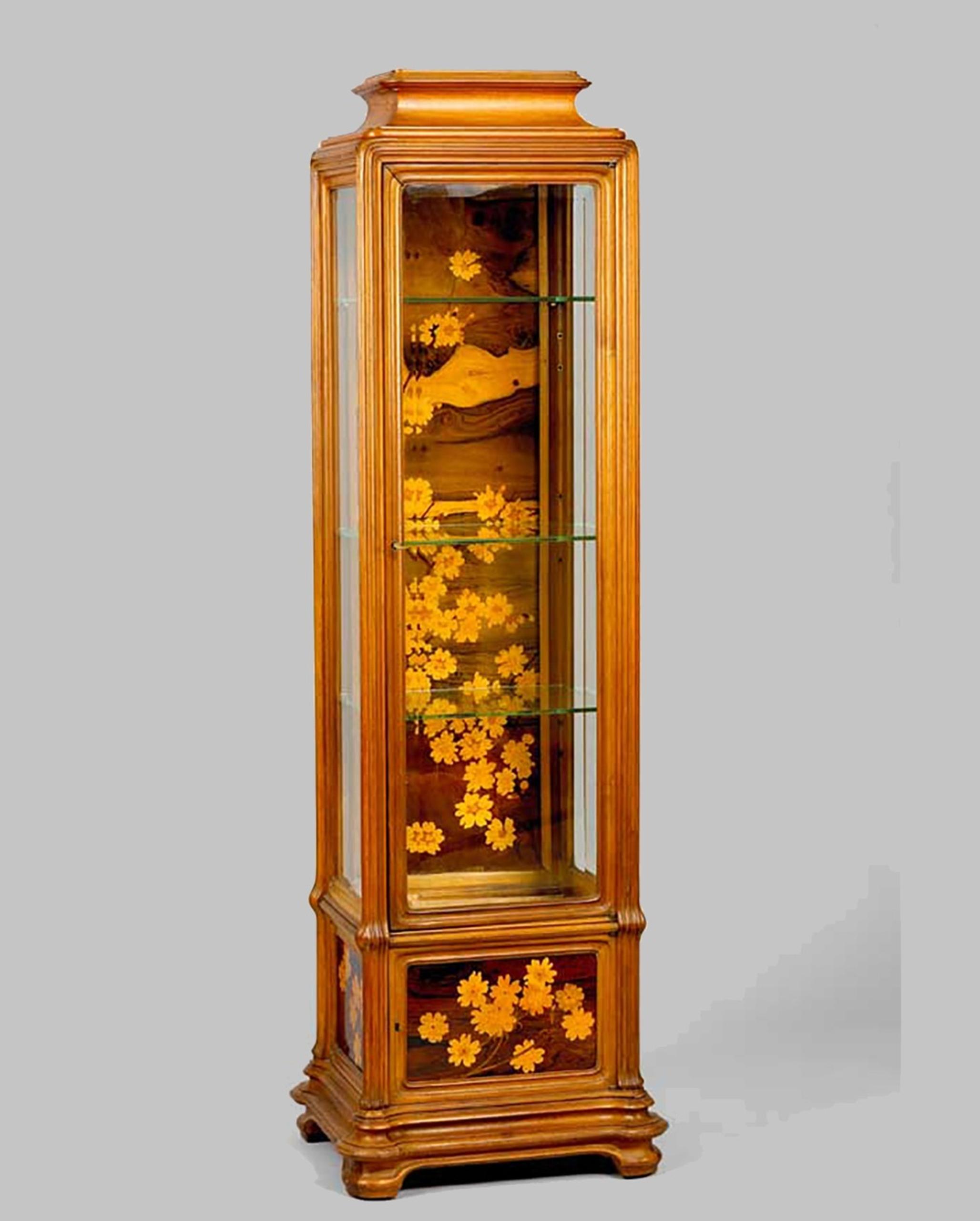 EMILE GALLE (1846-1904) Mahogany vitrine with a marquetry decoration of apple blossoms