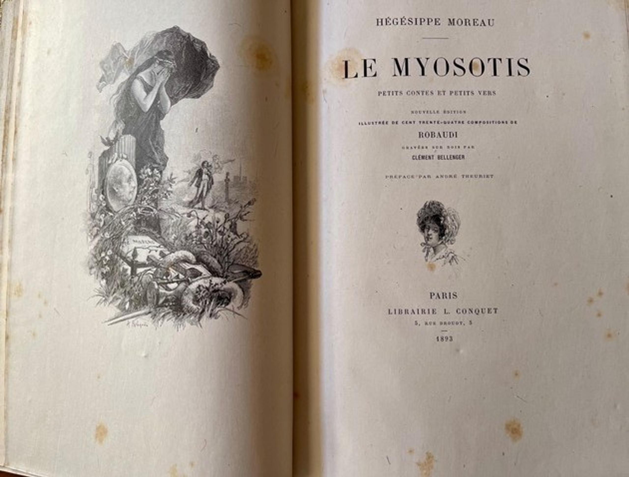 HEGESIPPE MOREAU (1810-1838) (author) ALCIDE THEOPHILE ROBAUDI (illustrator) PETRUS RUBAN (1851-1929) (binding) Le myosotis. Petits contes et petit vers