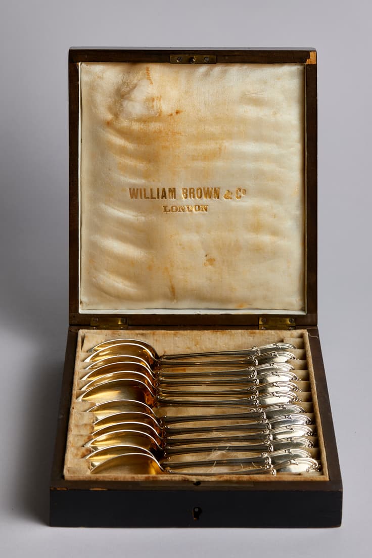WILLIAM BROWN SET OF TWELVE SILVER-GILT DESSERT SPOONS