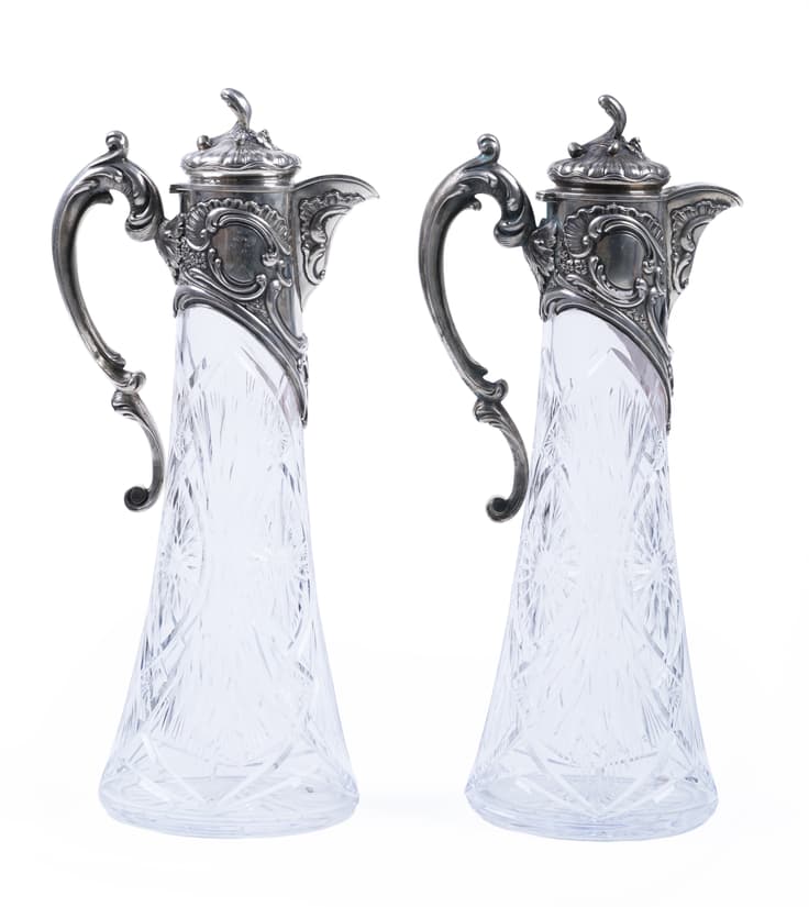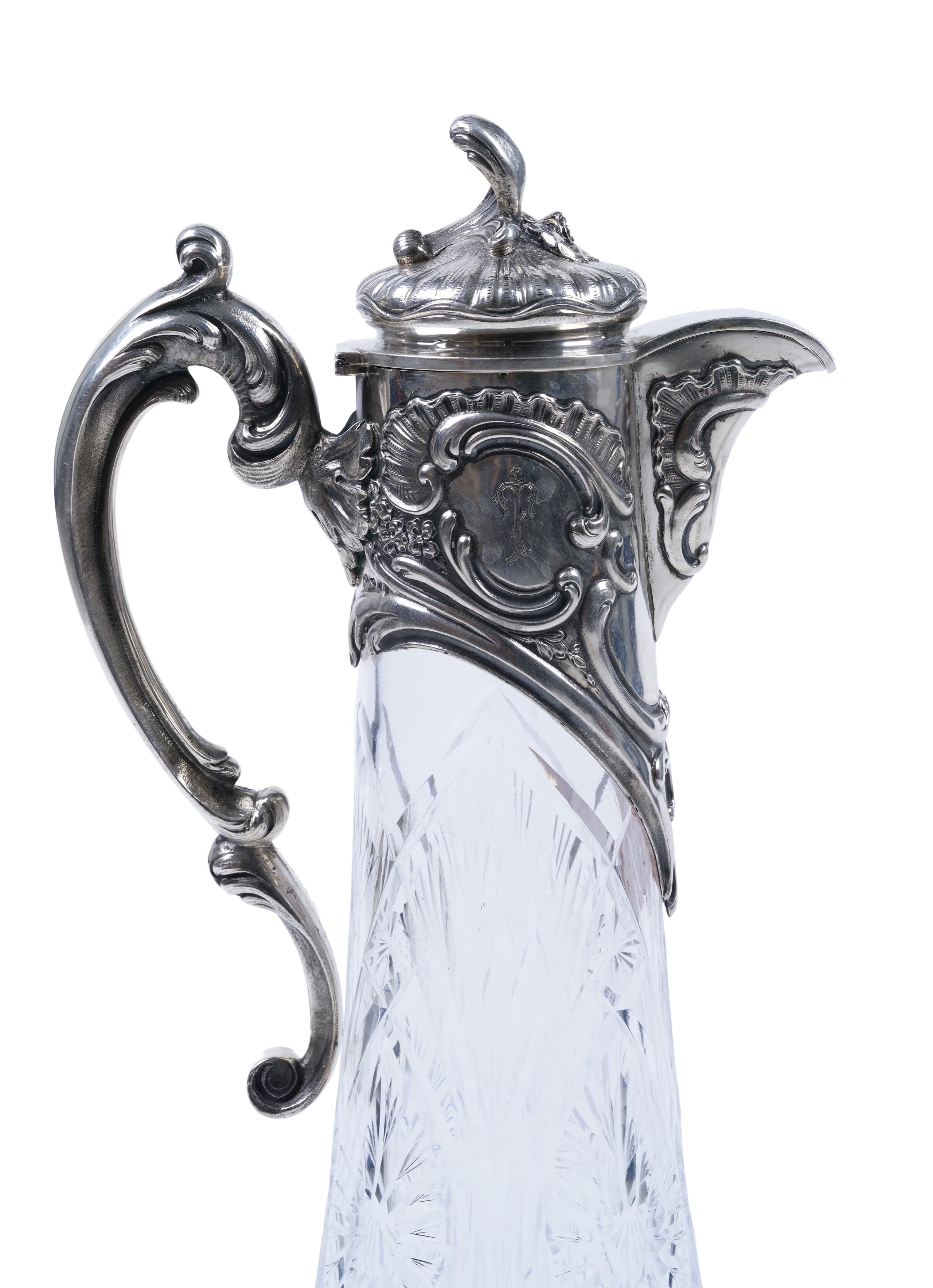 silver, cast, engraved, mounted, carved crystal