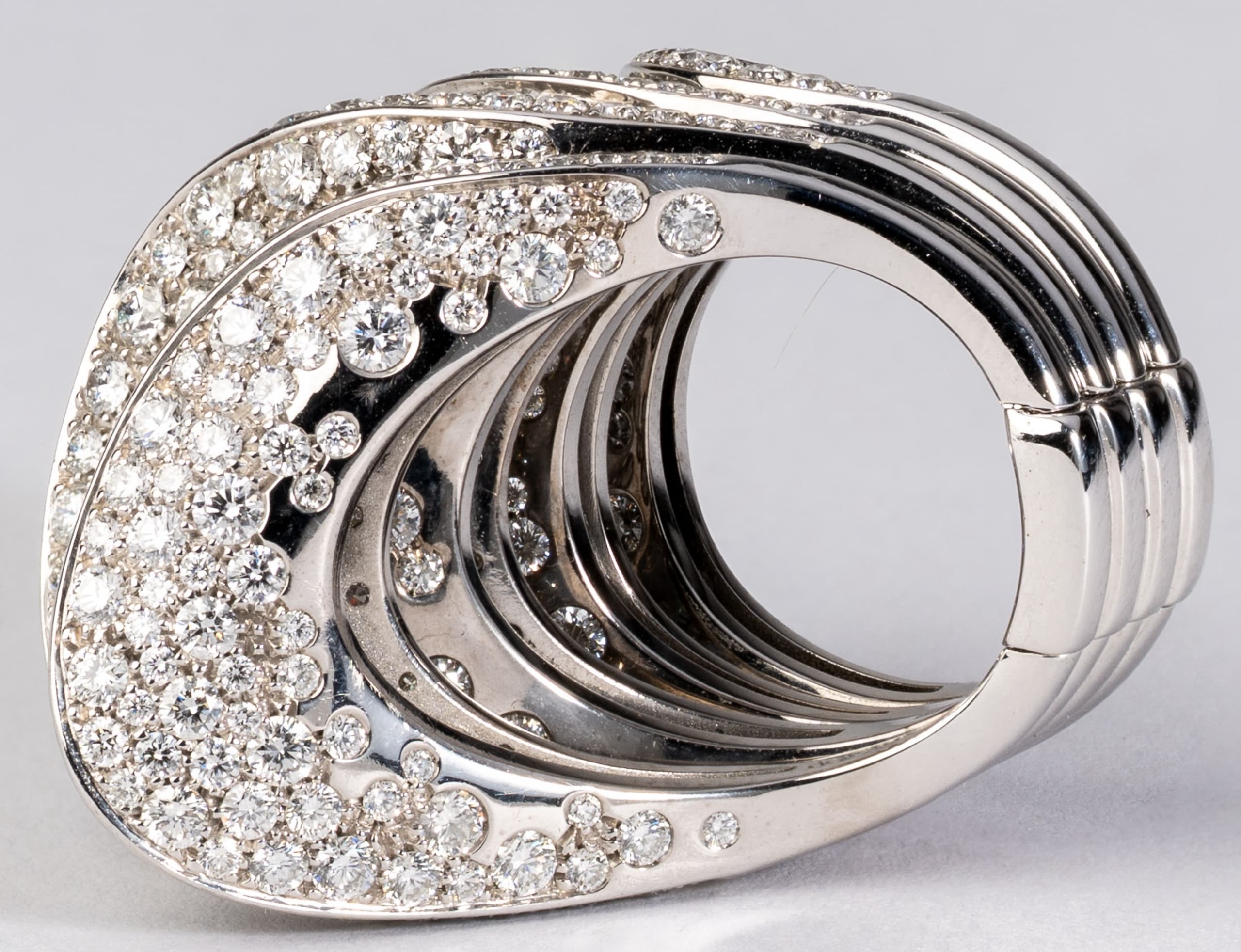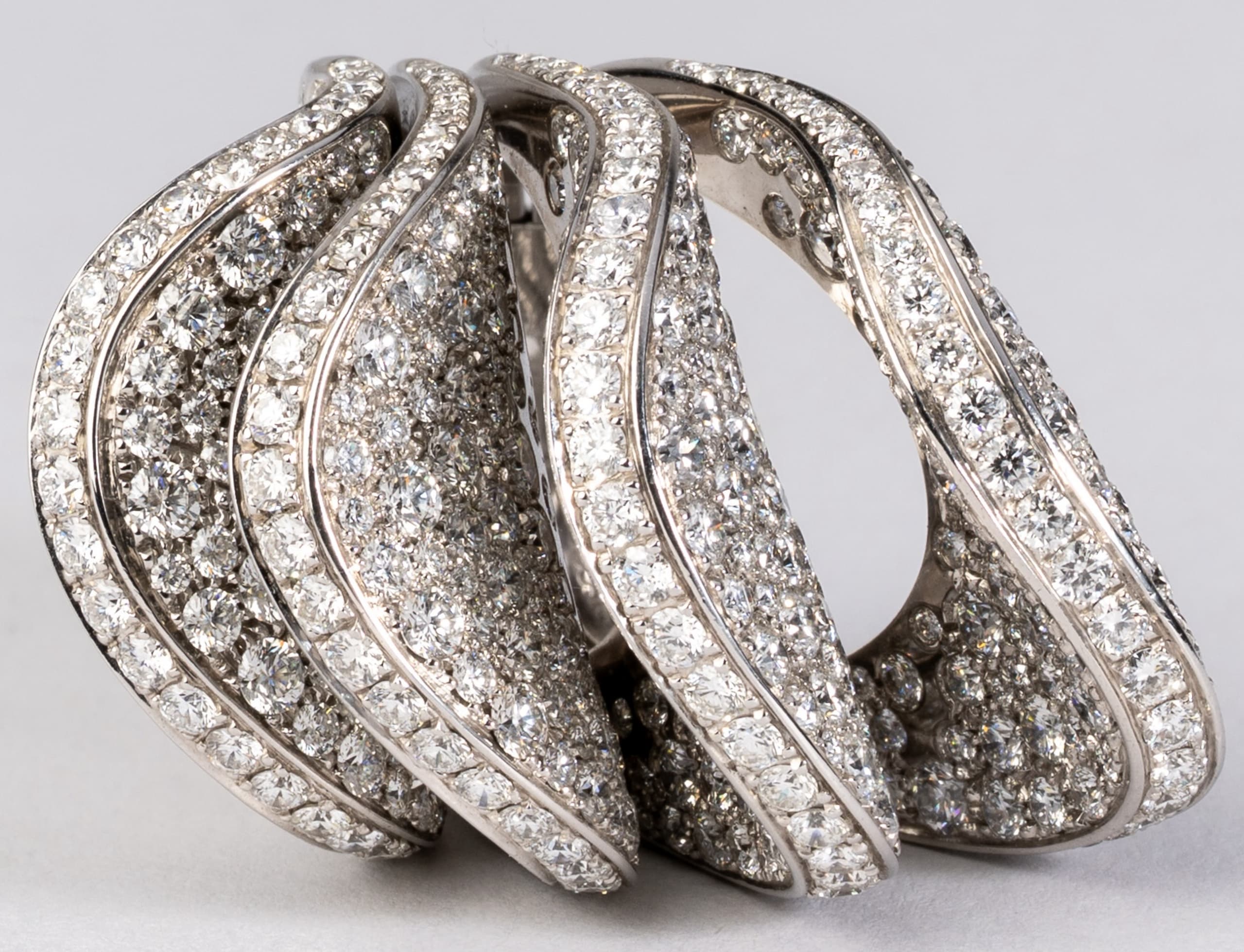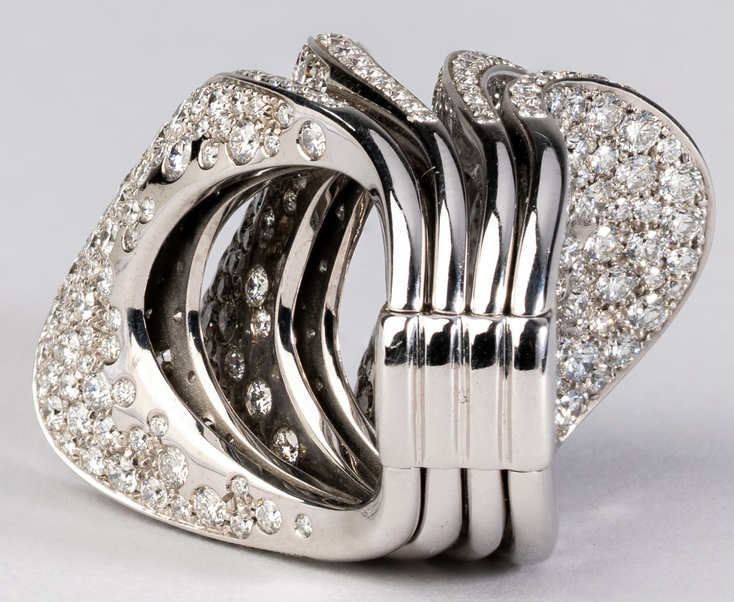 De Grisogono ‘Onde’ ring in 18k white gold composed with articulated rings paved with brilliant-cut diamonds weighing approximately 15,30 ct.