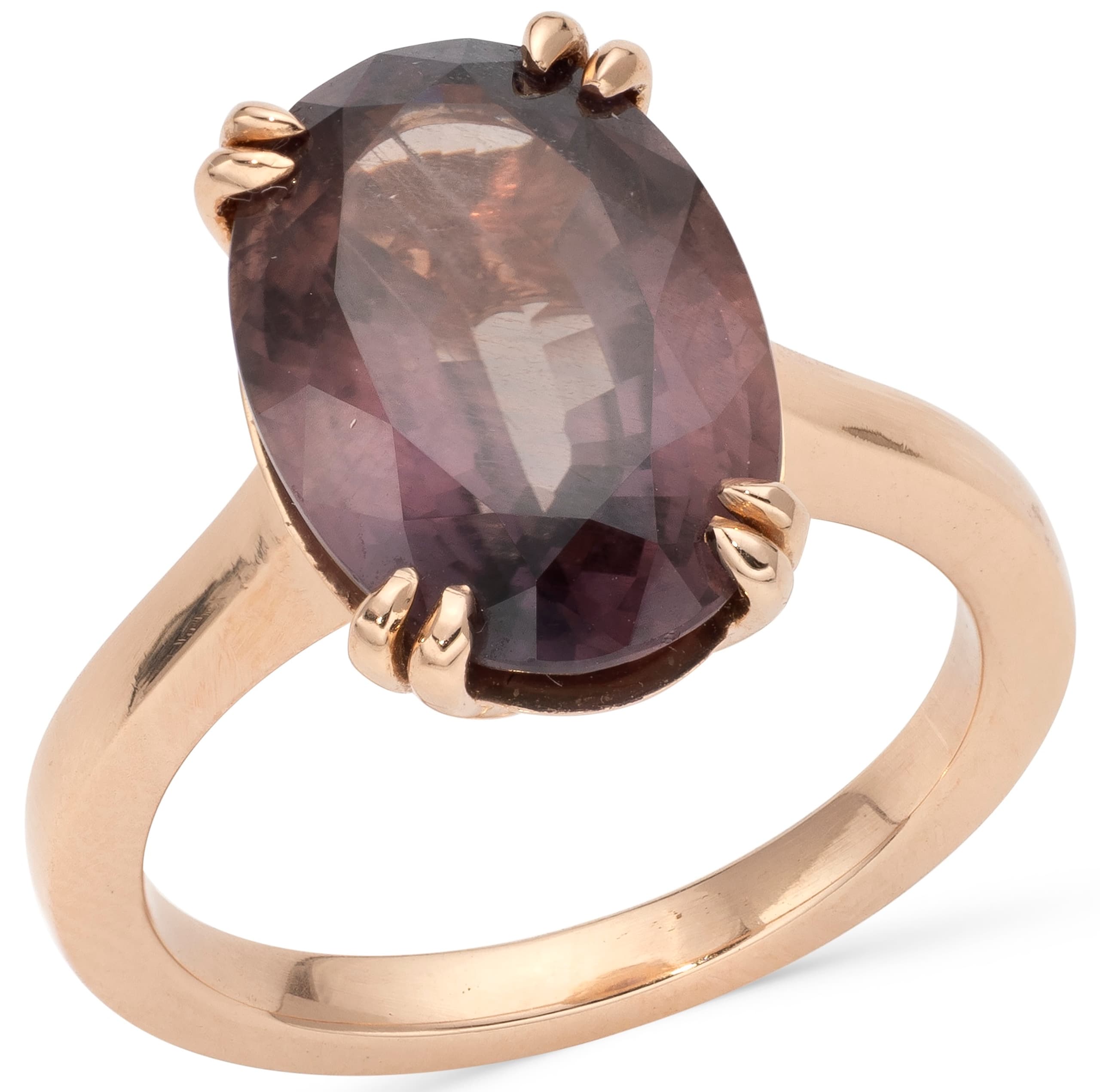 18k yellow gold ring set with a purple tanzanian sapphire weighing 8 ct. Sapphire accompanied by the GRD report number GRS2021-057572 dated 28th May 2021, statting the following : Carat weight : 7.85 ct. Shape and cutting style : oval brilliant, Measurements : 14.68 x10.01 x 6 mm Colour : purple Comments : no indication of thermal treatment Origin : Umba (Tanzania) size 53 gross weight : 3,8 gr.