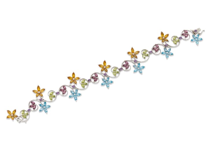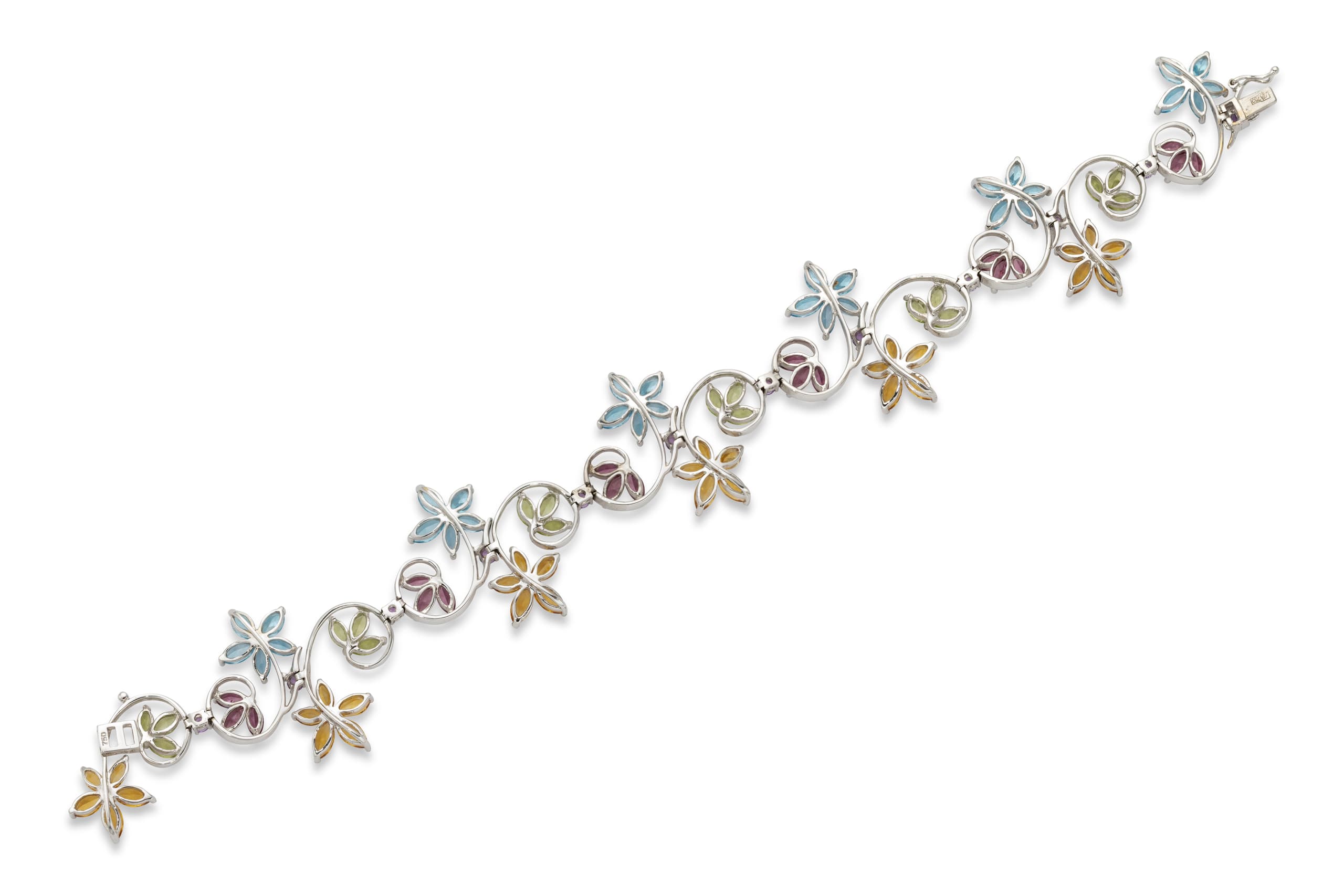 18k white gold bracelet decorated with citrine, tourmaline, spinel flowers