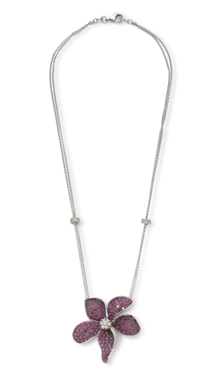 ‘FLOWER’ 18K WHITE GOLD, DIAMOND AND ROSE SAPPHIRE NECKLACE