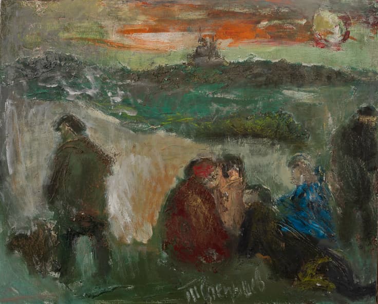 signed in Cyrillic ‘T. Slepyshev’ (lower center), titled in Cyrillic and numbered ‘Vecher/ N 137’ (on the reverse)